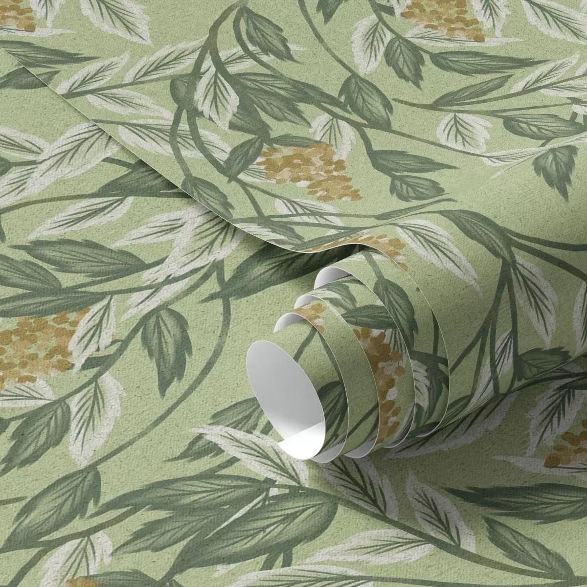 Tapet Ramuri cu ciorchini de fructe de pădure pe fundal verde Nr. a00734