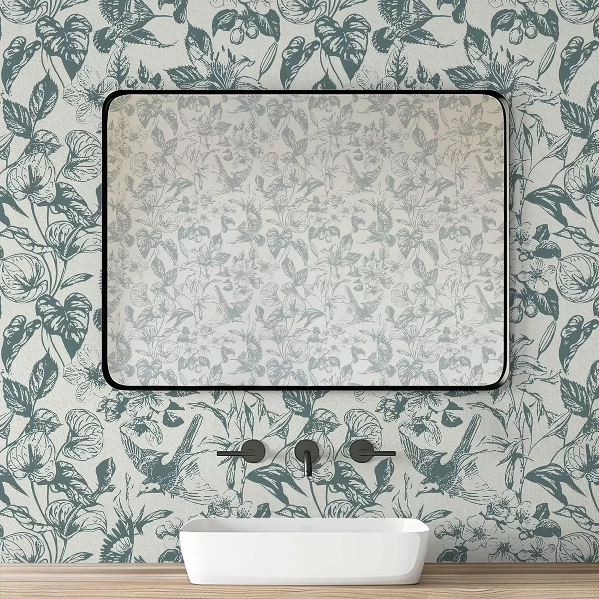 Tapet Ornament floral monocrom cu păsări Nr. a00737