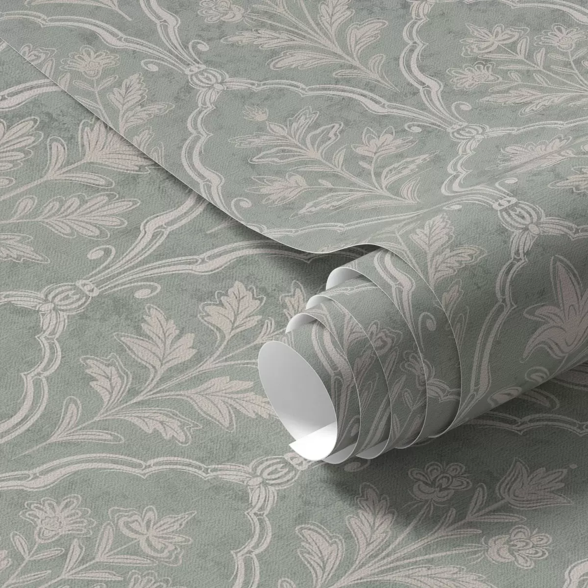 Tapet Damasc mentolat cu medalioane florale fine Nr. a00741