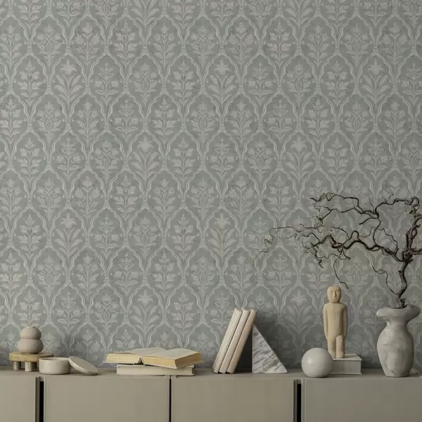 Wallpaper Damasc mentolat cu medalioane florale fine a00741