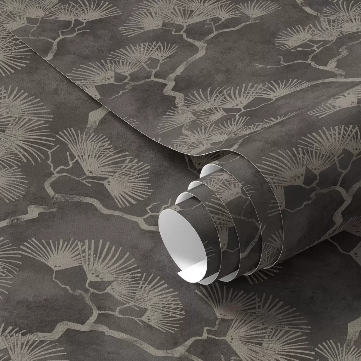 Tapet Siluete de pini pe un fundal întunecat, textură ceață Nr. a00742
