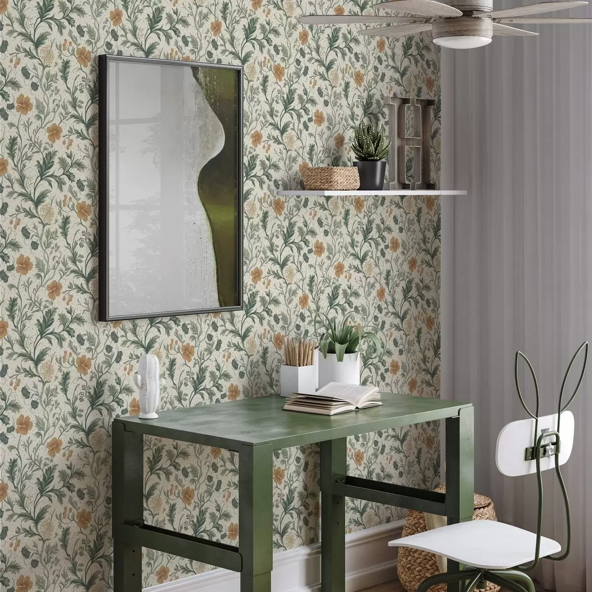 Tapet Ramuri subțiri cu flori și fructe de pădure pe un fundal granulat Nr. a00744