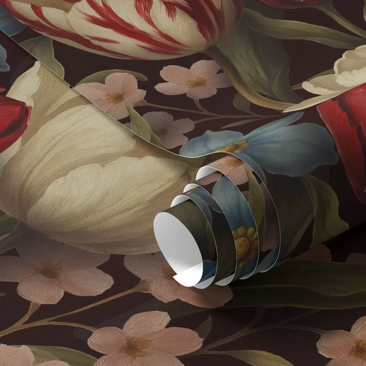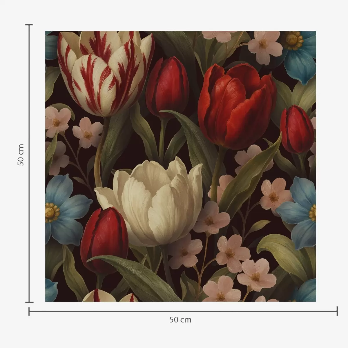 Tapet Lalele strălucitoare și flori albastre pe fundal întunecat Nr. a00746