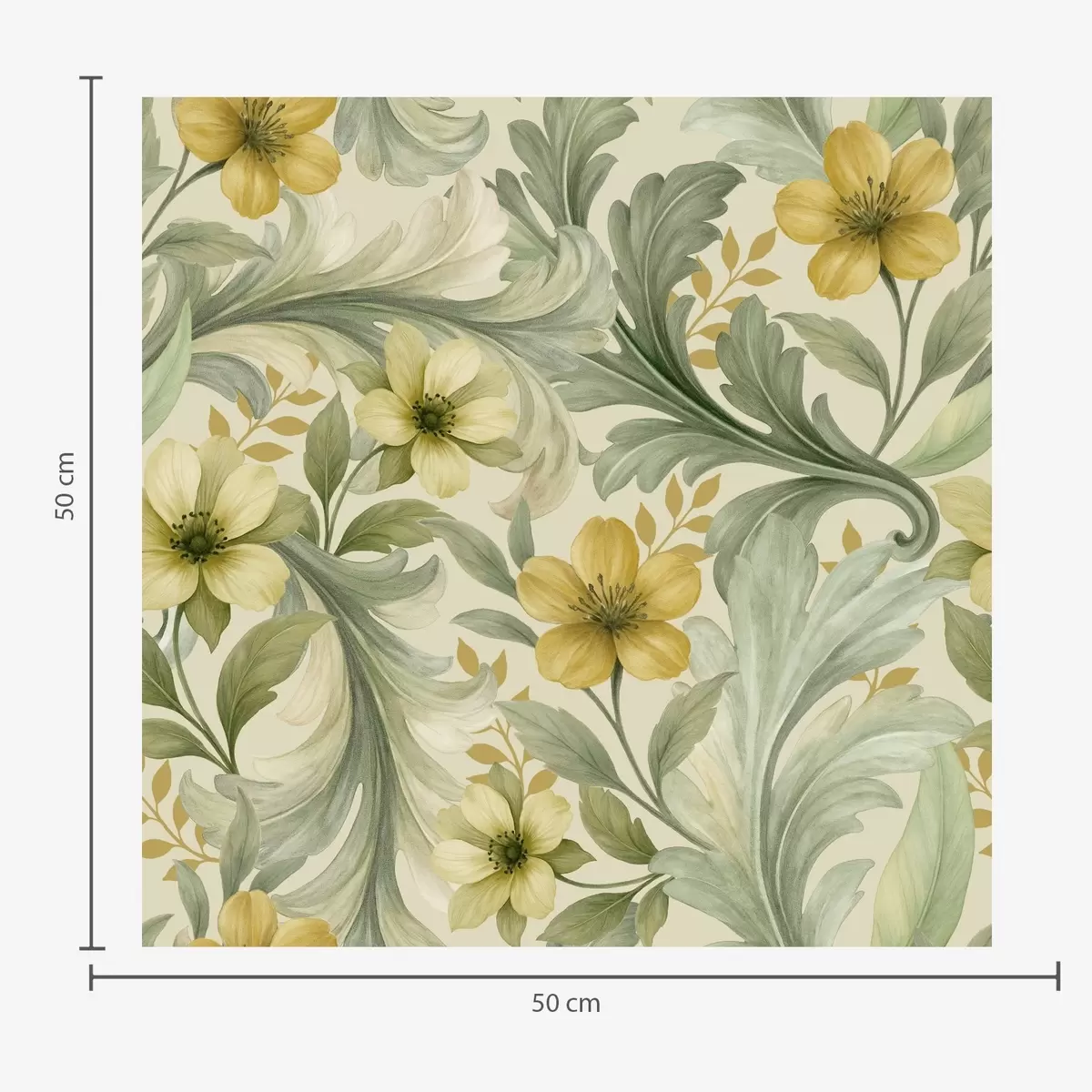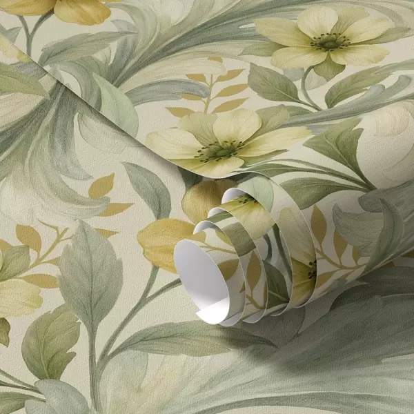 Tapet Volute de acant cu flori în tonuri de verde și galben Nr. a00749
