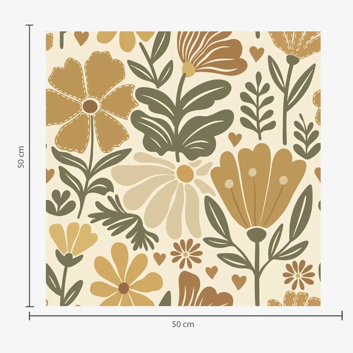 Tapet Flori stilizate în tonuri calde cu inimioare Nr. a00752