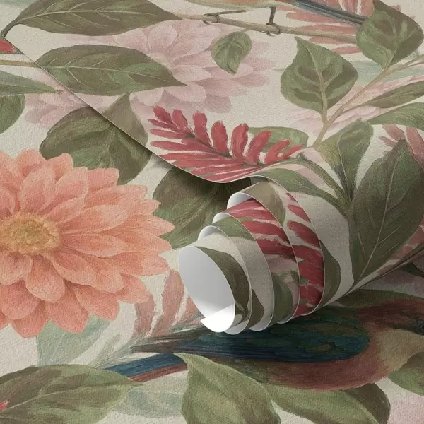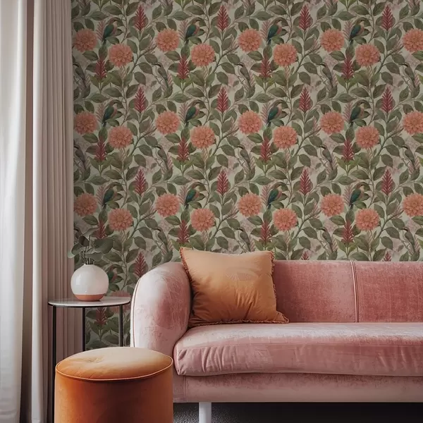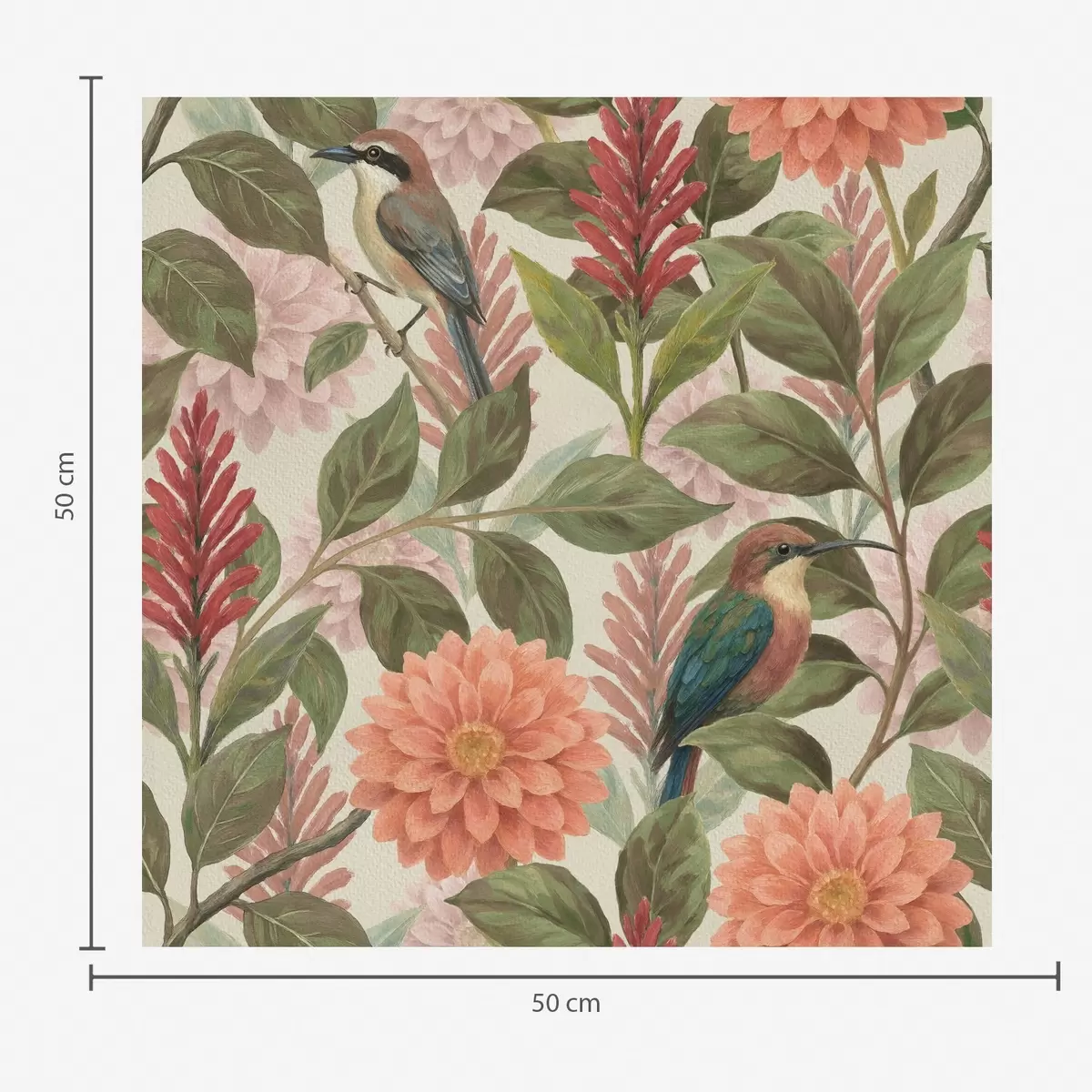 Tapet Păsări printre flori și frunze în tonuri calde Nr. a00753