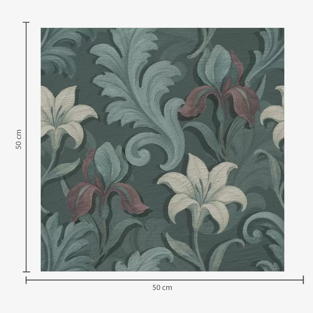 Tapet Fundal verde închis cu iriși și frunze decorative Nr. a00755