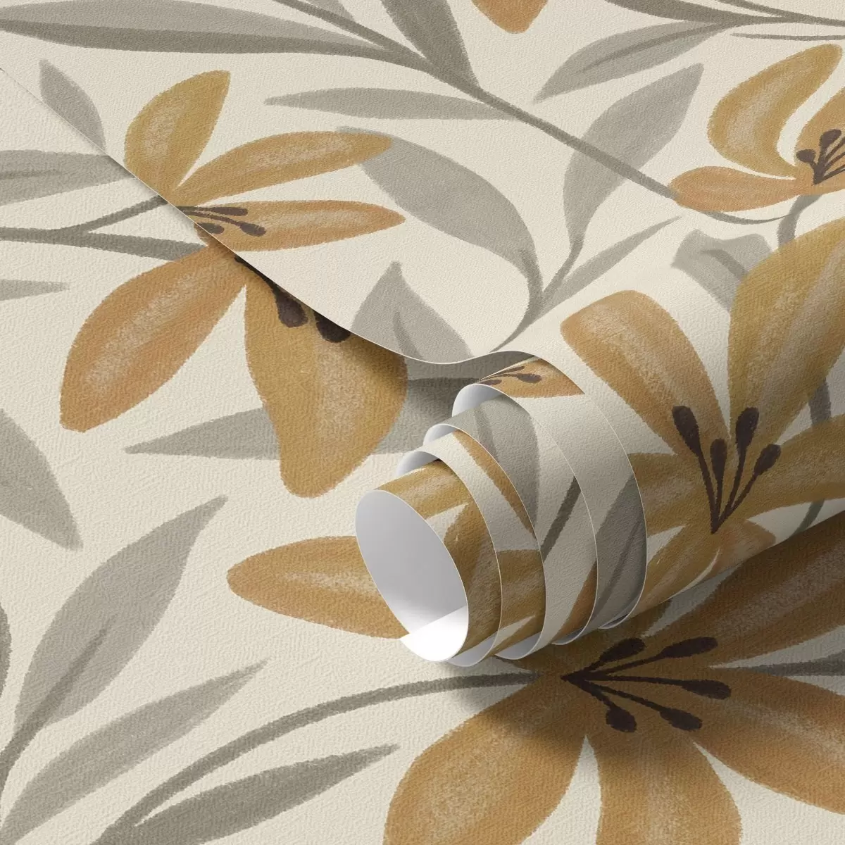 Tapet Crini galbeni și frunze gri-verzui pe fundal deschis Nr. a00757