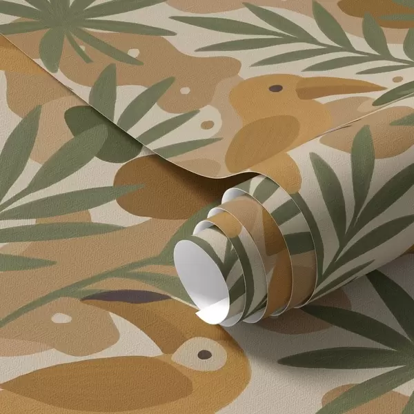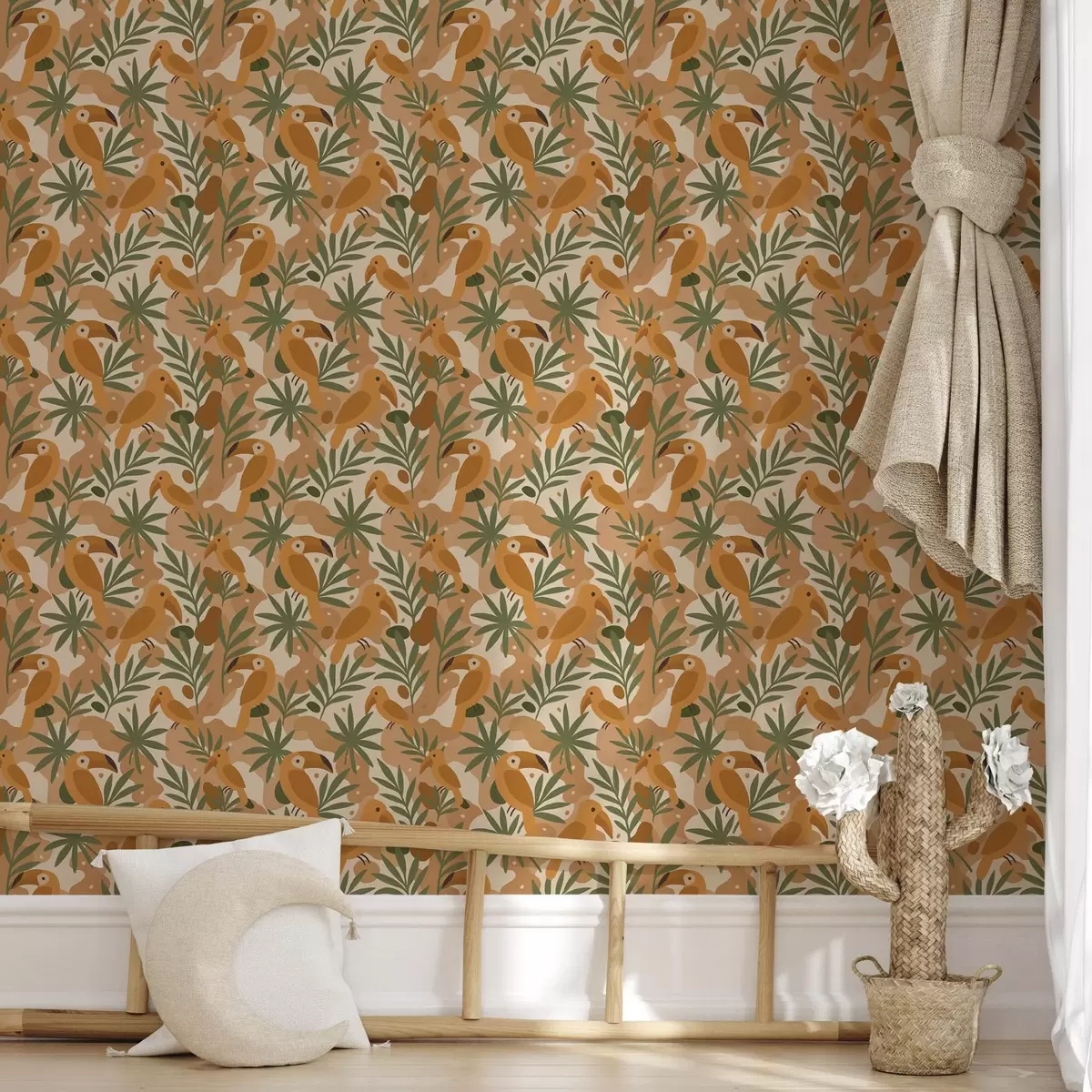 Tapet Tucani stilizați printre frunze de palmier Nr. a00762