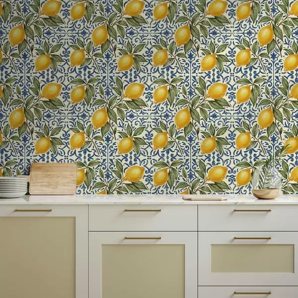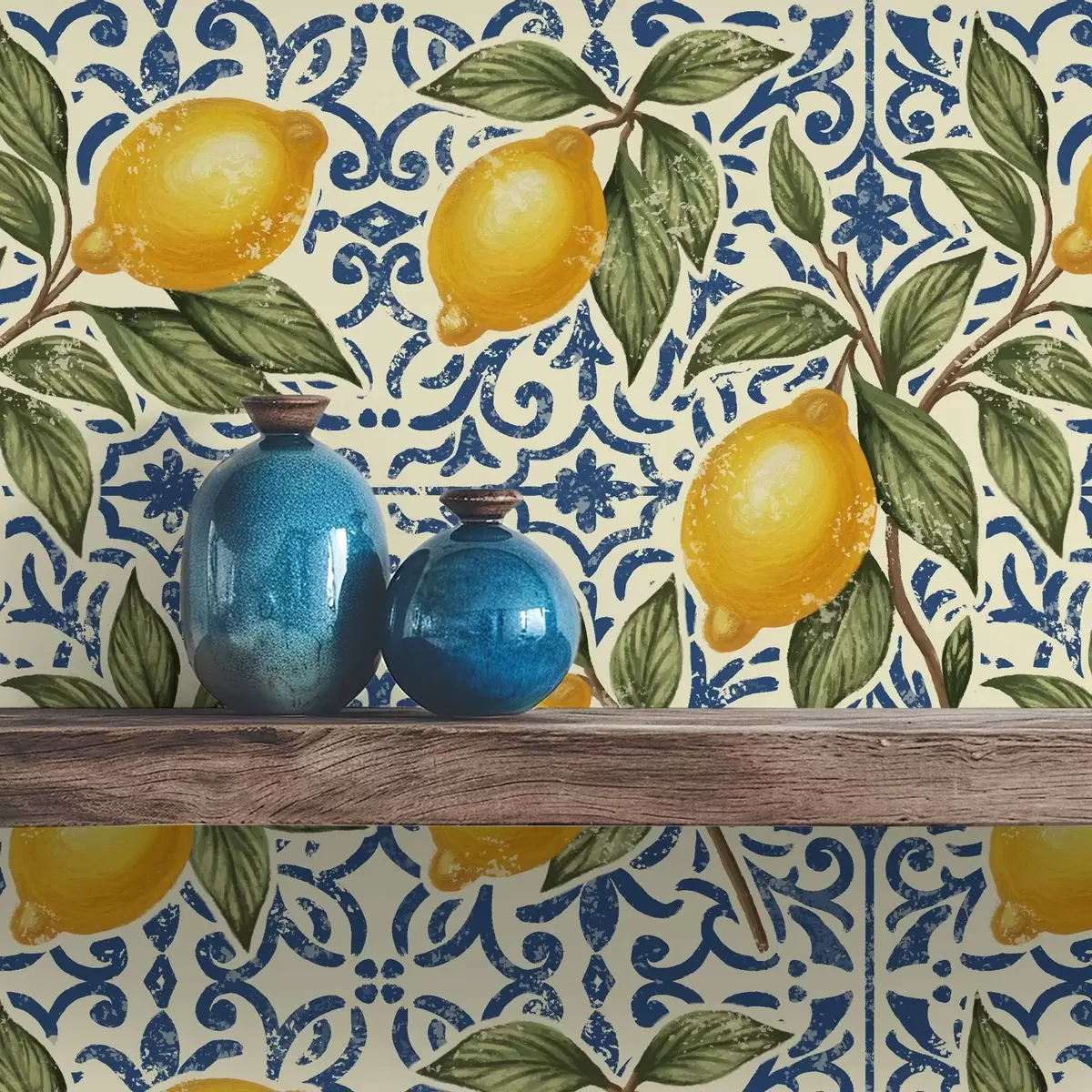 Tapet Ramuri de lămâie cu fundal ornamental albastru Nr. a00763