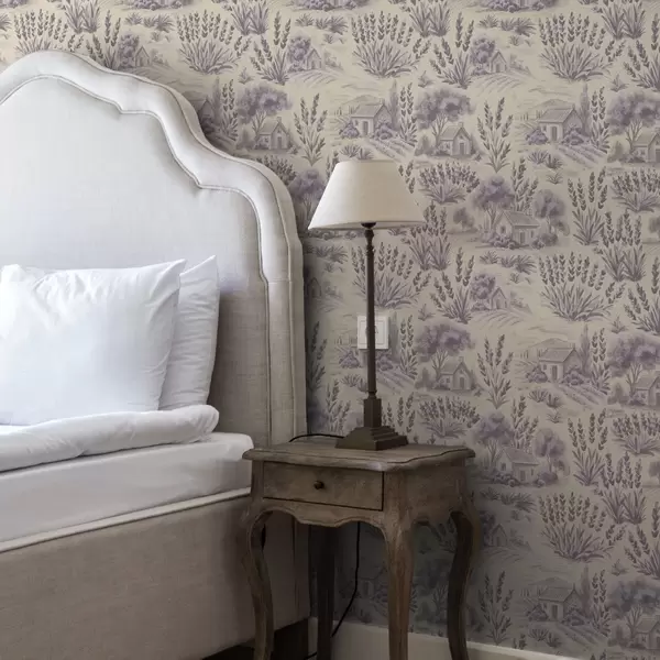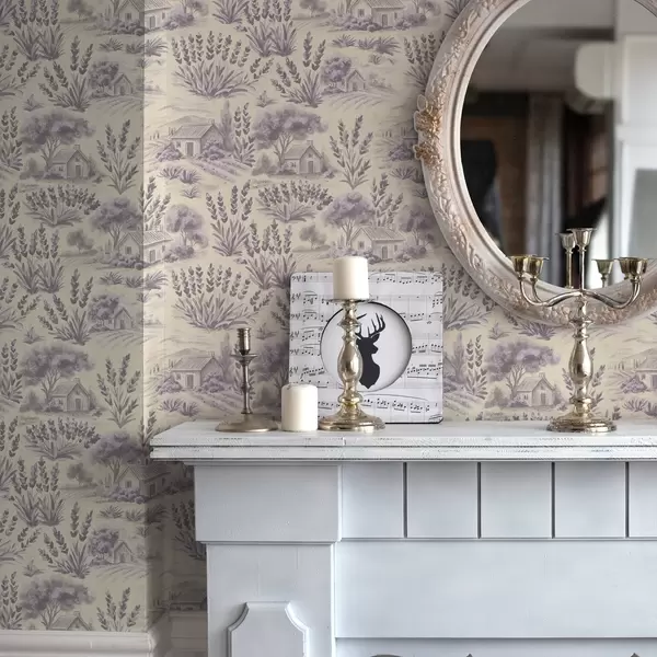 Tapet Câmpuri de lavandă și case în tonuri pastelate Nr. a00765
