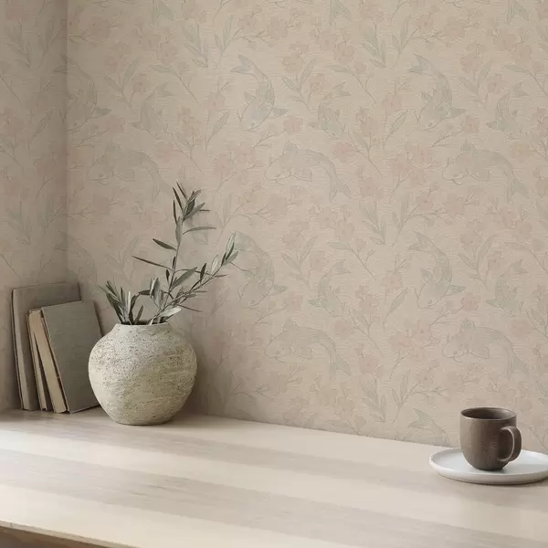 Tapet Crapii printre flori în nuanțe delicate de bej-roz Nr. a00766