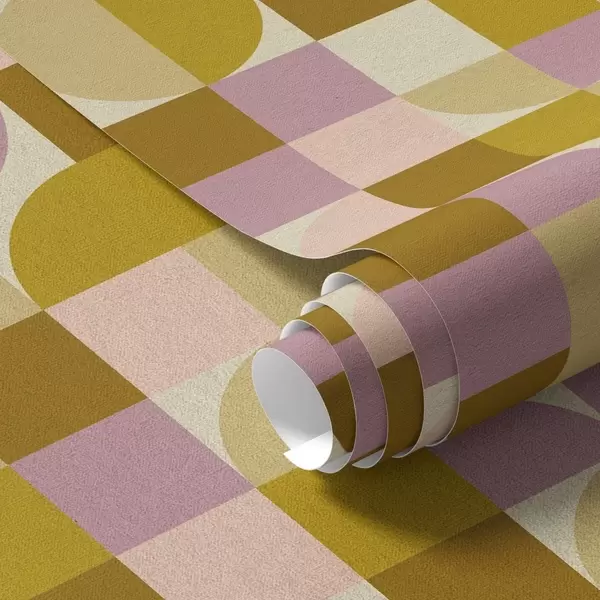 Tapet Geometrie modulară în nuanțe de roz și muștar Nr. a00770v1