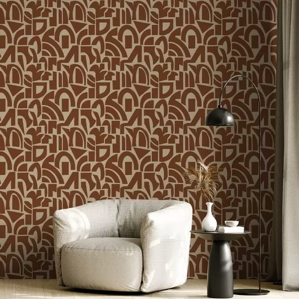 Tapet Forme geometrice din teracotă pe pânză de in Nr. a00774