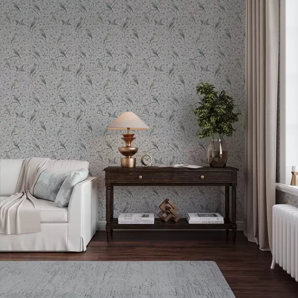 Tapet Păsări pe crengi, schemă de culori gri-albastru Nr. a00782