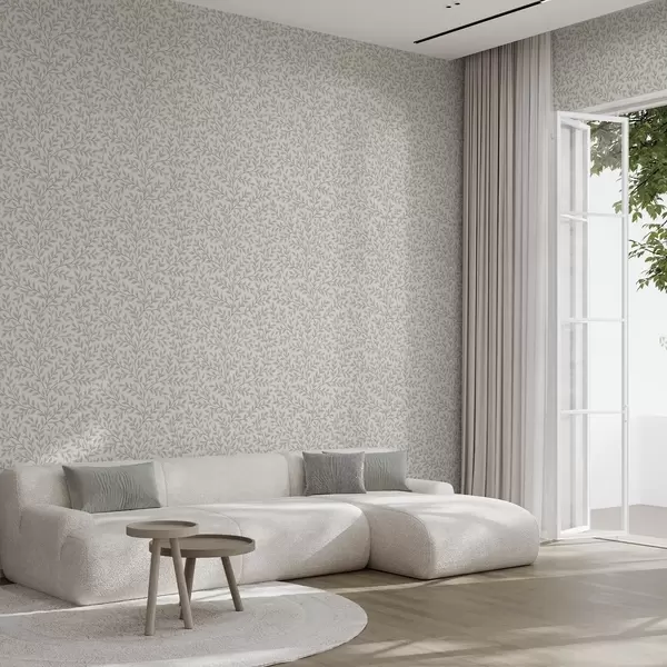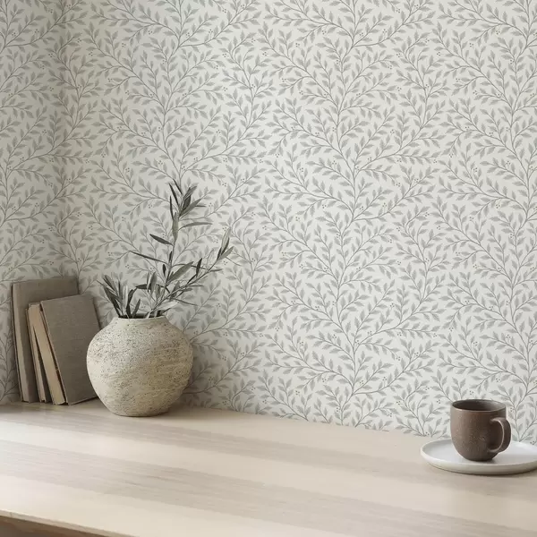 Tapet Ramuri cu frunze și fructe de pădure, crem deschis și salvie Nr. a00783