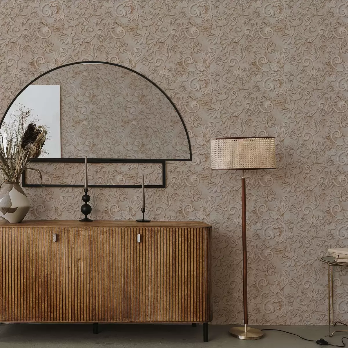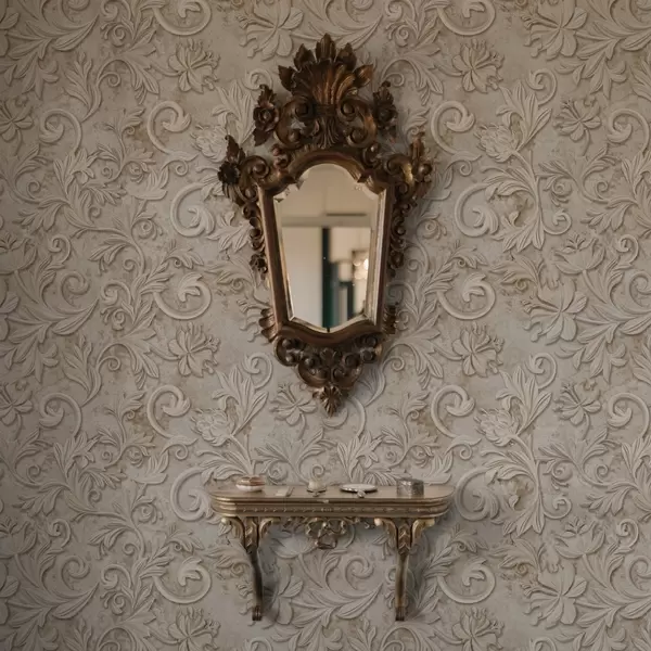 Tapet Relief din piatră cu volute florale, bej vintage Nr. a00784