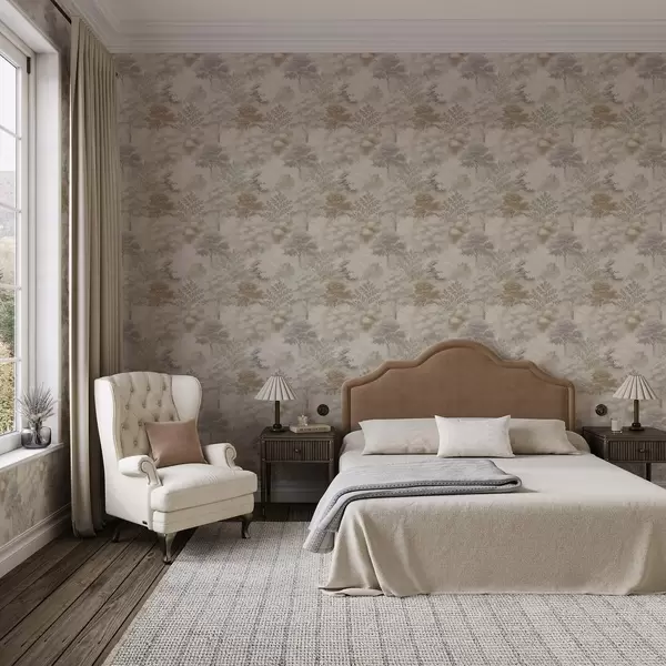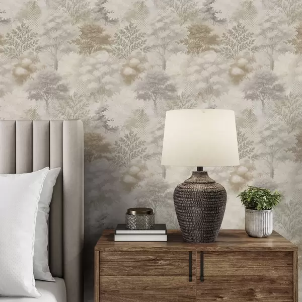 Tapet Pădure blândă în ceață, tonuri delicate de bej-gri Nr. a00785