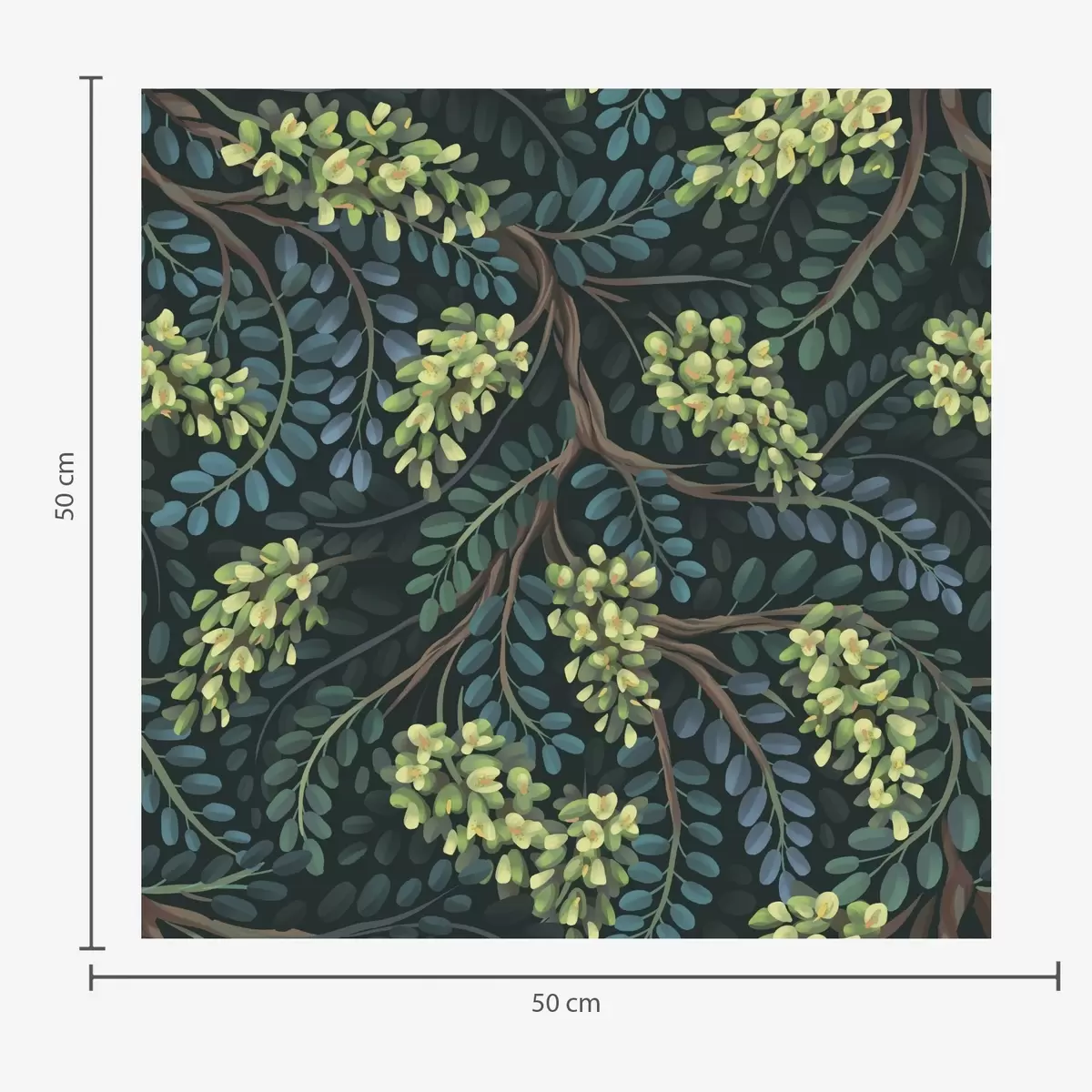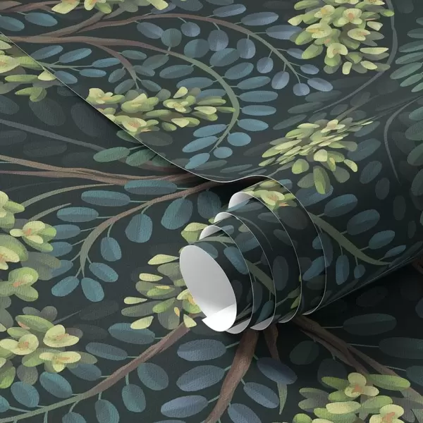 Tapet Ramuri cu inflorescențe verzui pe fond întunecat Nr. a00786