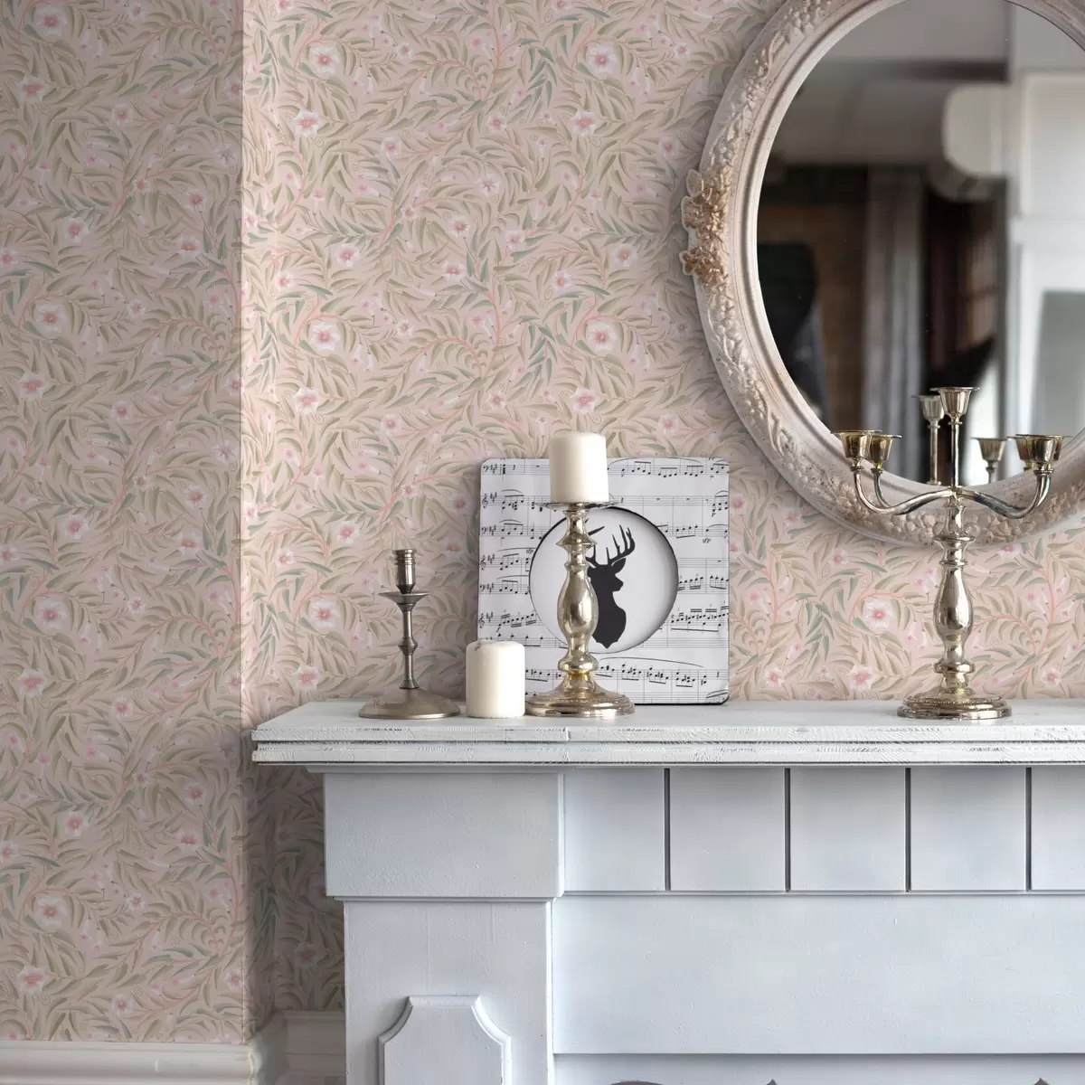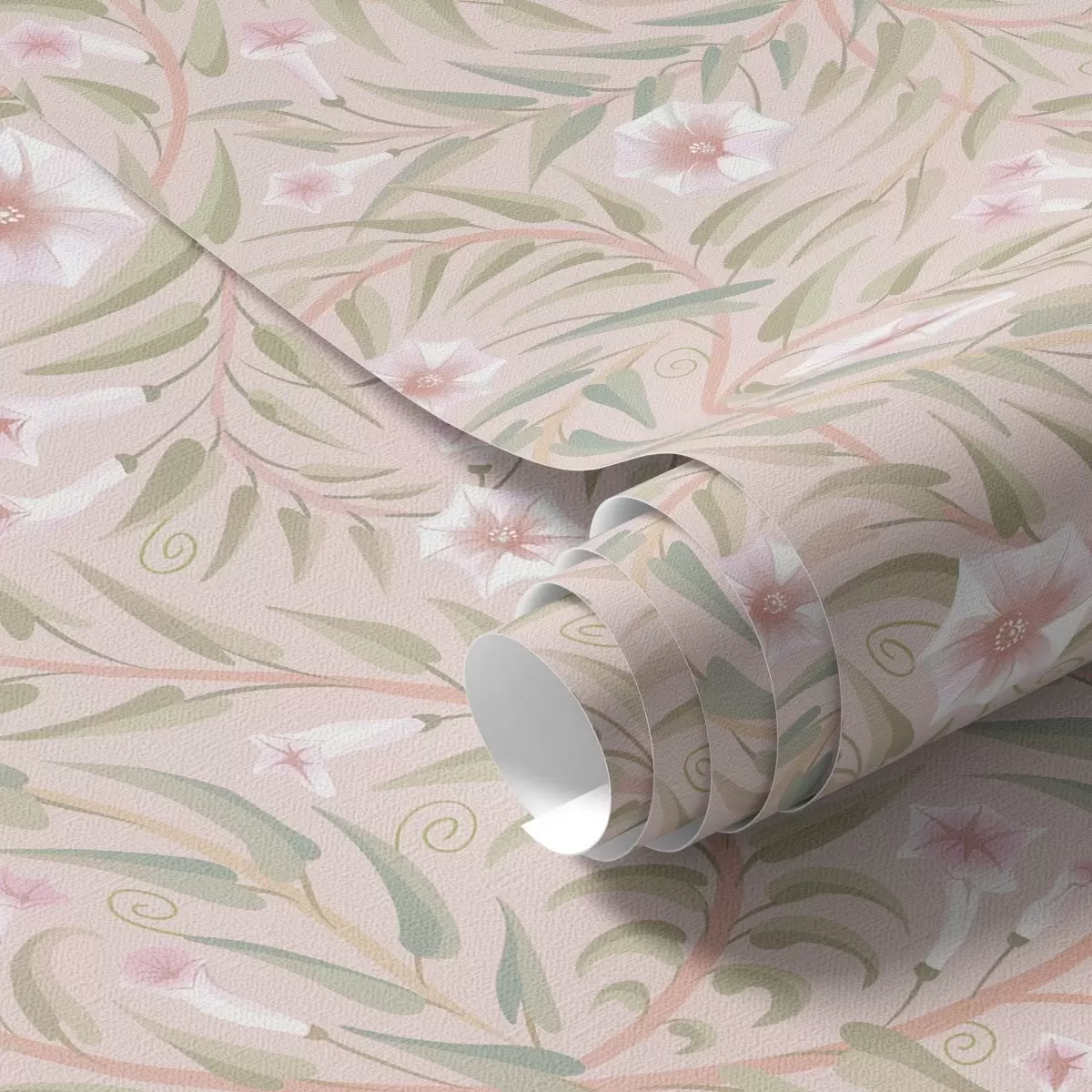 Tapet Flori delicate de culoare roz și frunze moi pe un fundal pastelat Nr. a00788