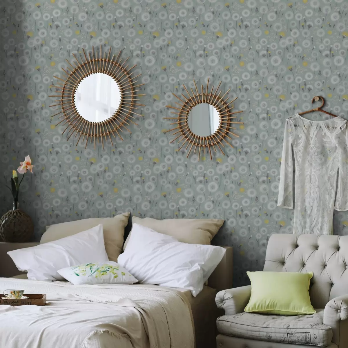 Tapet Păpădii pufoase și semințe pe un fundal de mentă Nr. a00790