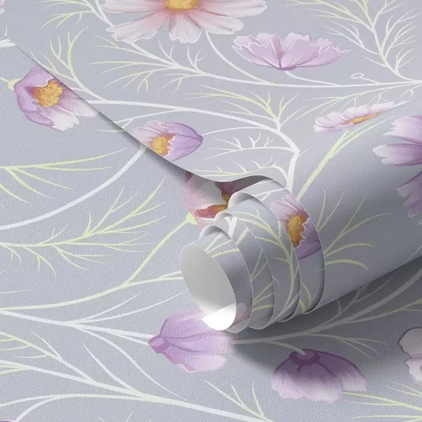 Tapet Cosmos roz și tulpini subțiri pe fond gri Nr. a00791