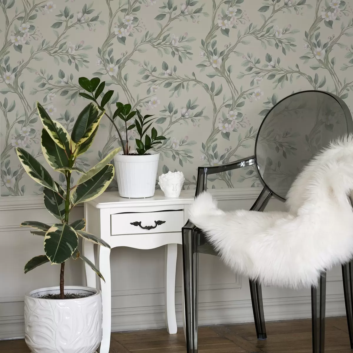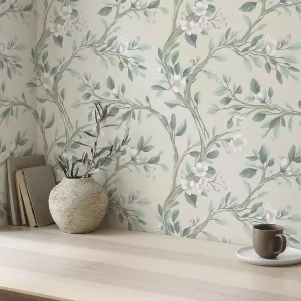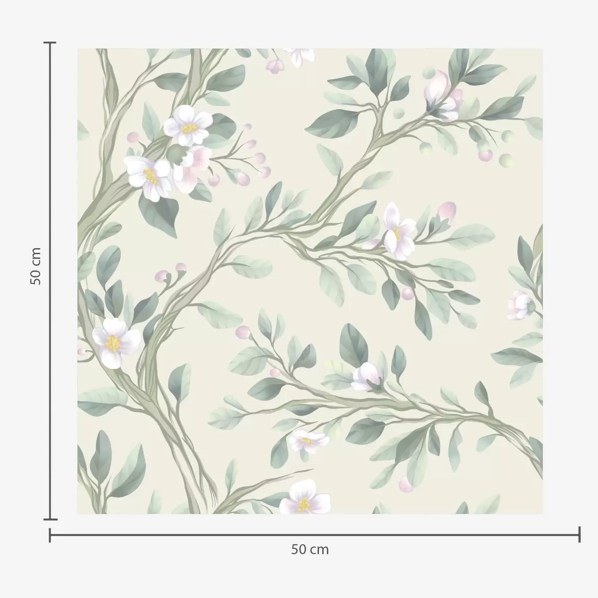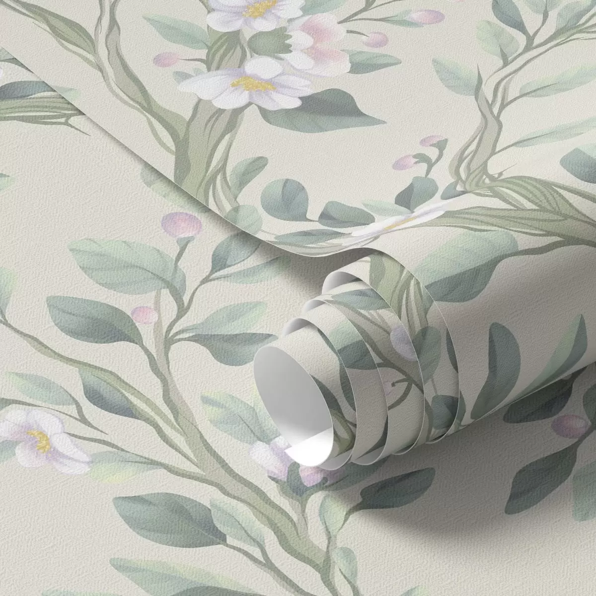 Tapet Ramuri delicate înflorite pe fond crem, pastelate Nr. a00793