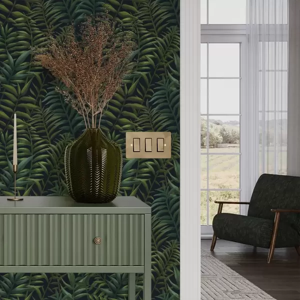 Tapet Frunze tropicale întunecate pe un fundal intens Nr. a00794