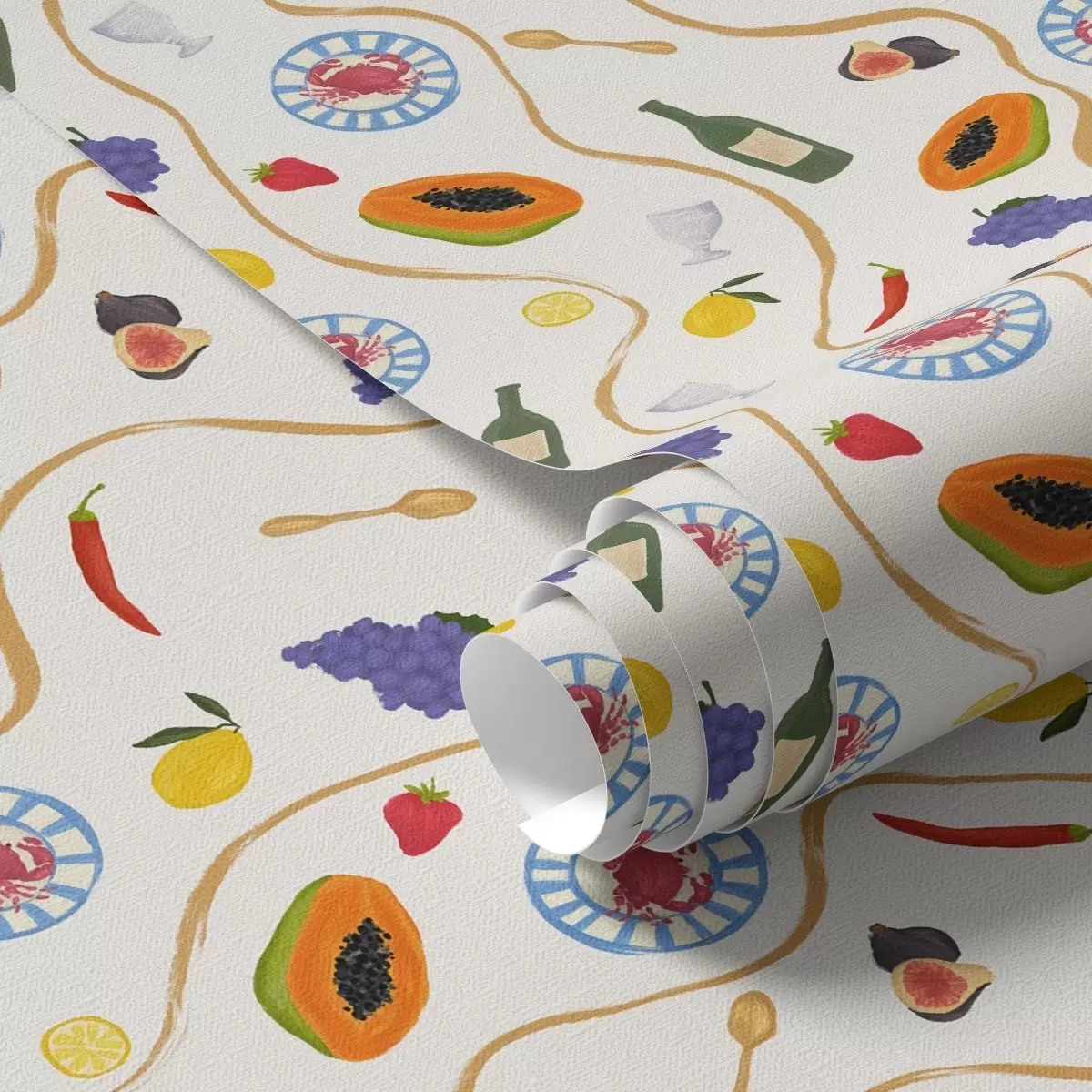 Wallpaper Sticle, papaya, lămâi și condimente pe un fundal deschis a00802