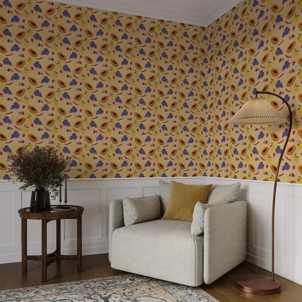 Tapet Papaya, citrice și fructe de pădure pe un fundal bogat și cald Nr. a00803v1