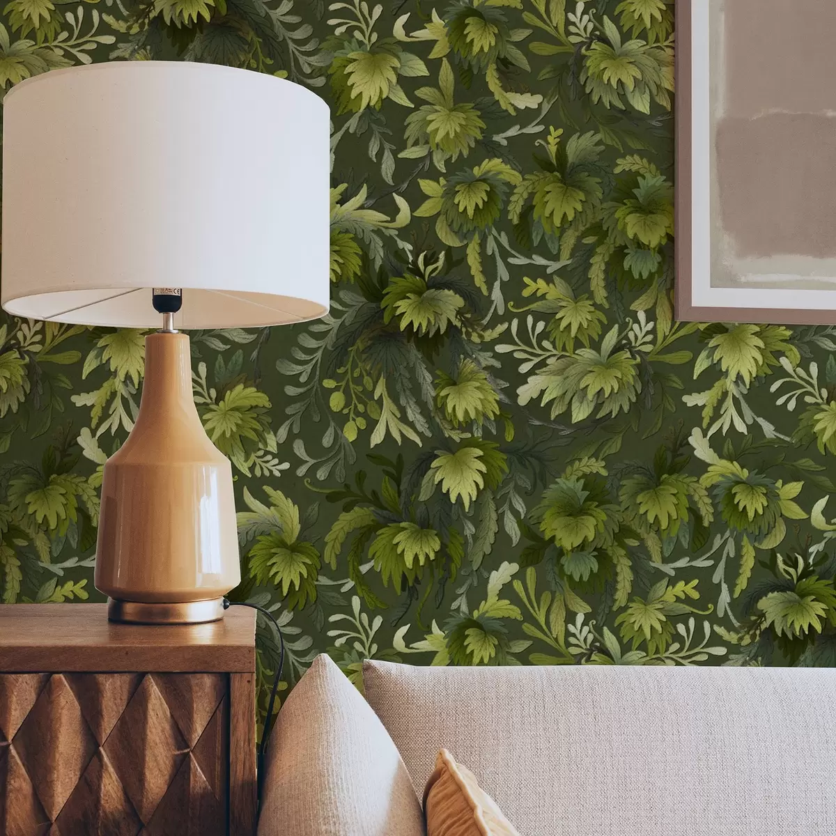 Tapet Frunziș verde dens pe un fundal verde închis Nr. a00805