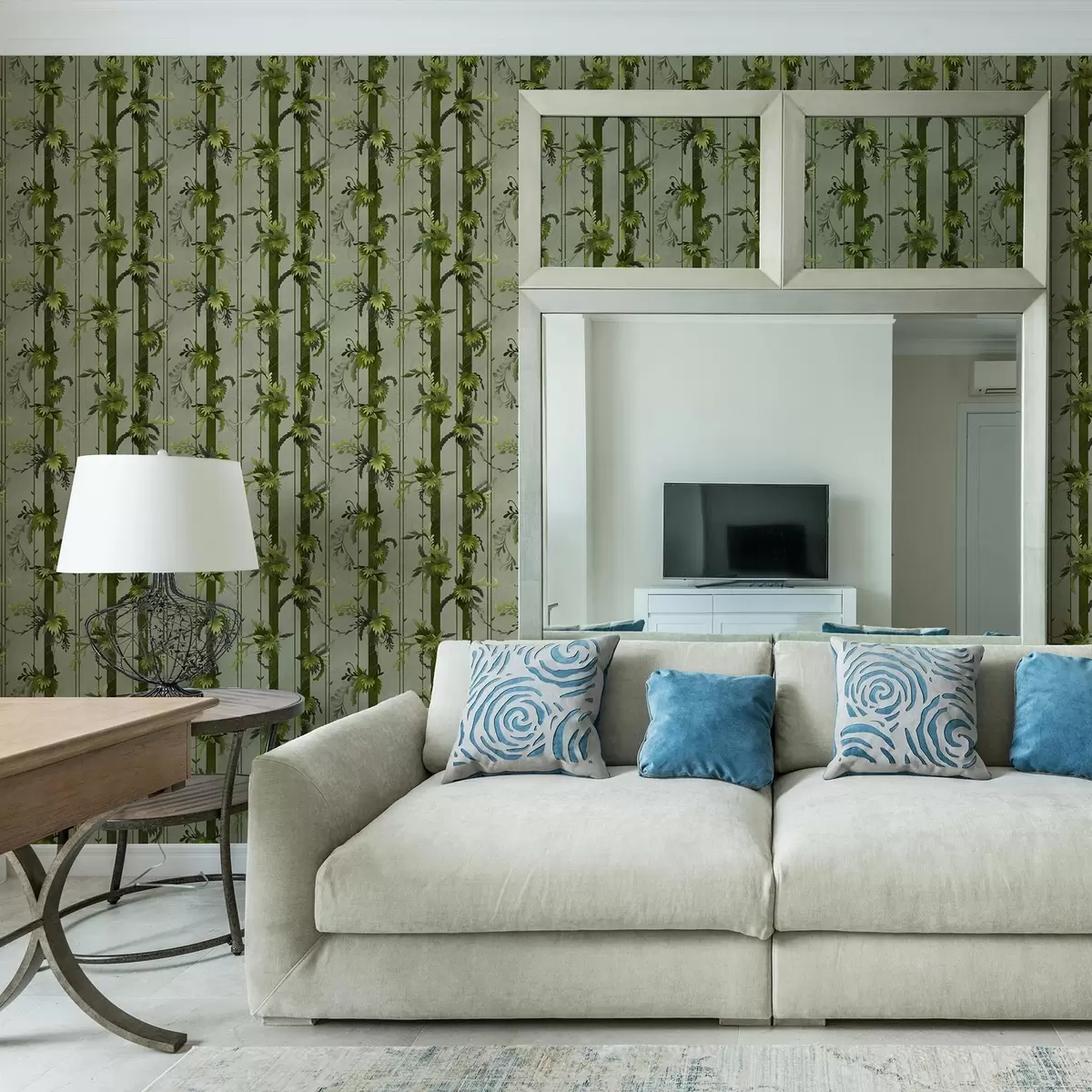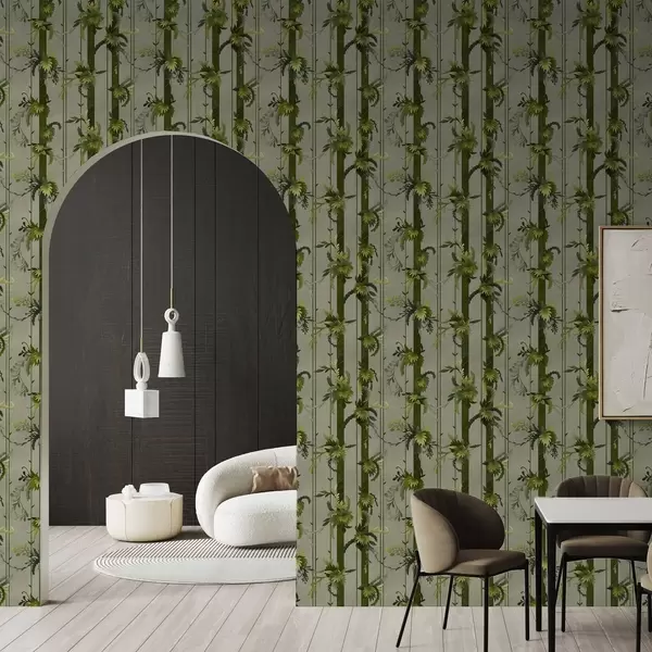 Tapet Frunze verzi în dungi verticale pe fond gri Nr. a00807v1