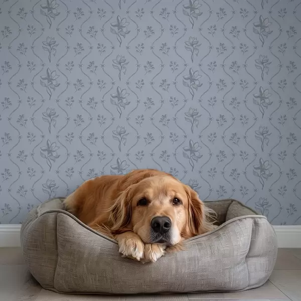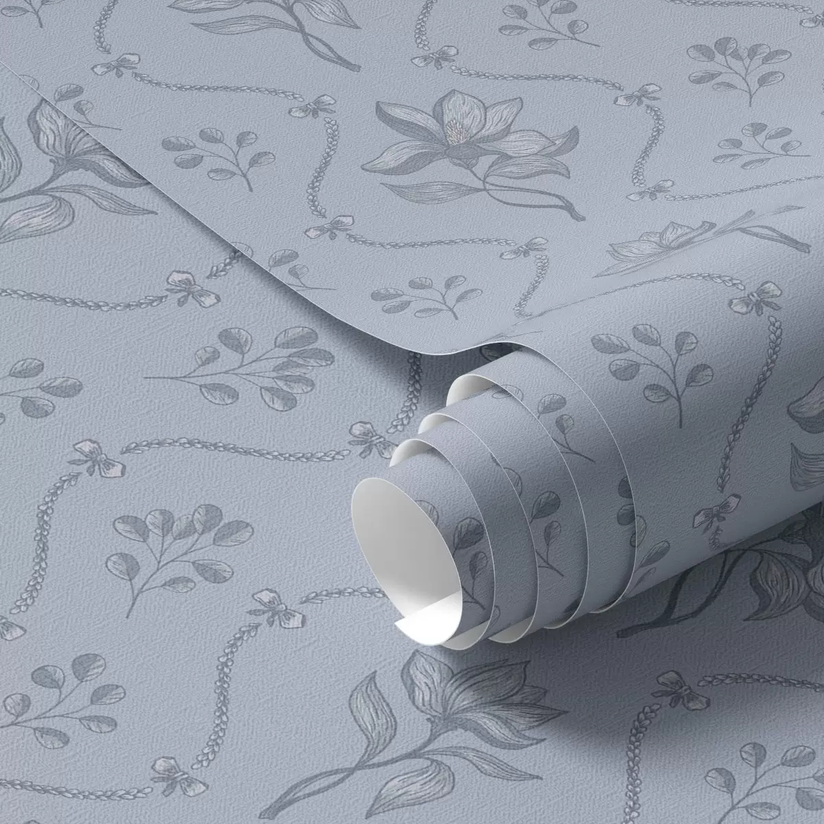 Tapet Flori mici și panglici în paleta de culori gri-albastru Nr. a00808v2
