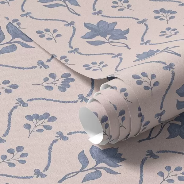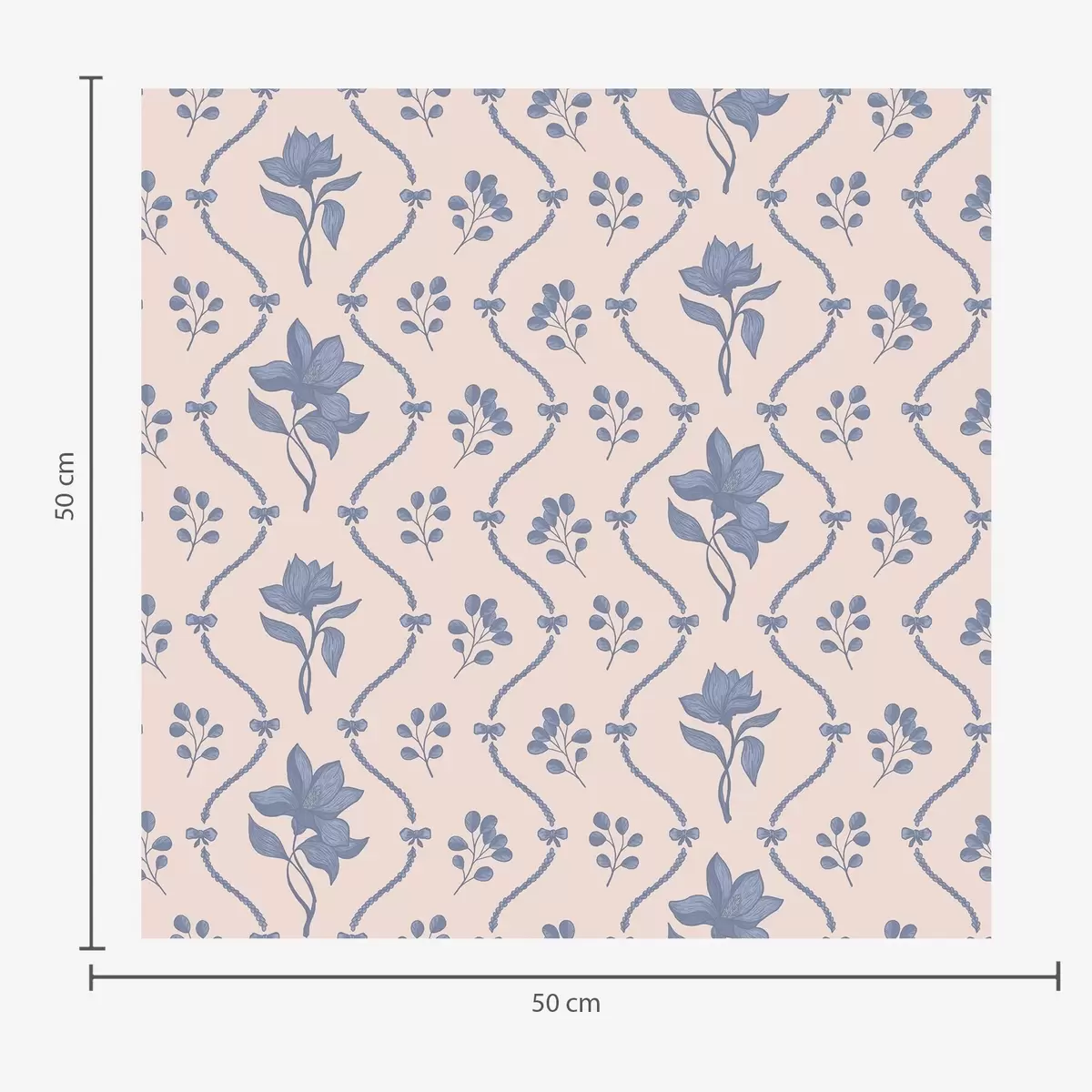 Tapet Flori mici și panglici în nuanțe de albastru și roz Nr. a00808v3