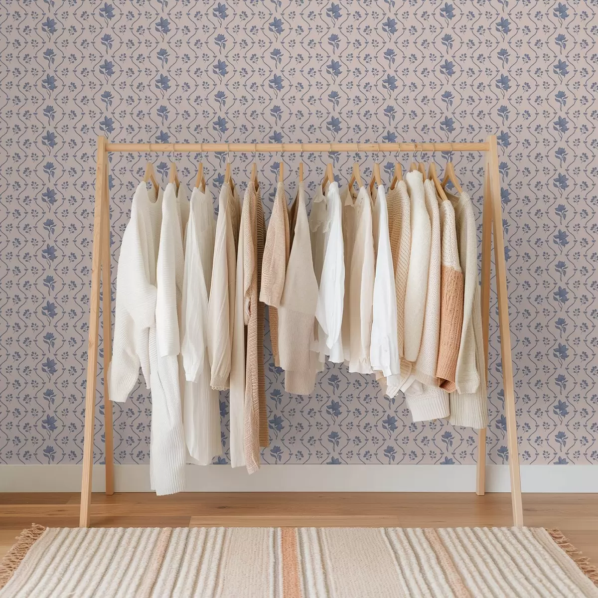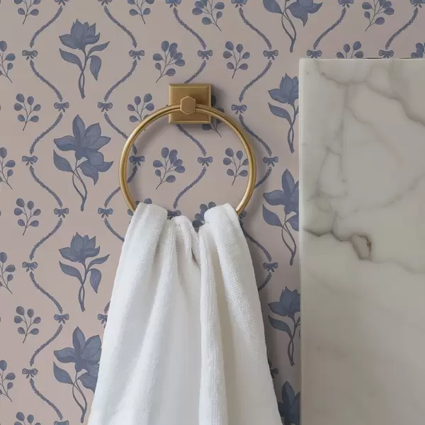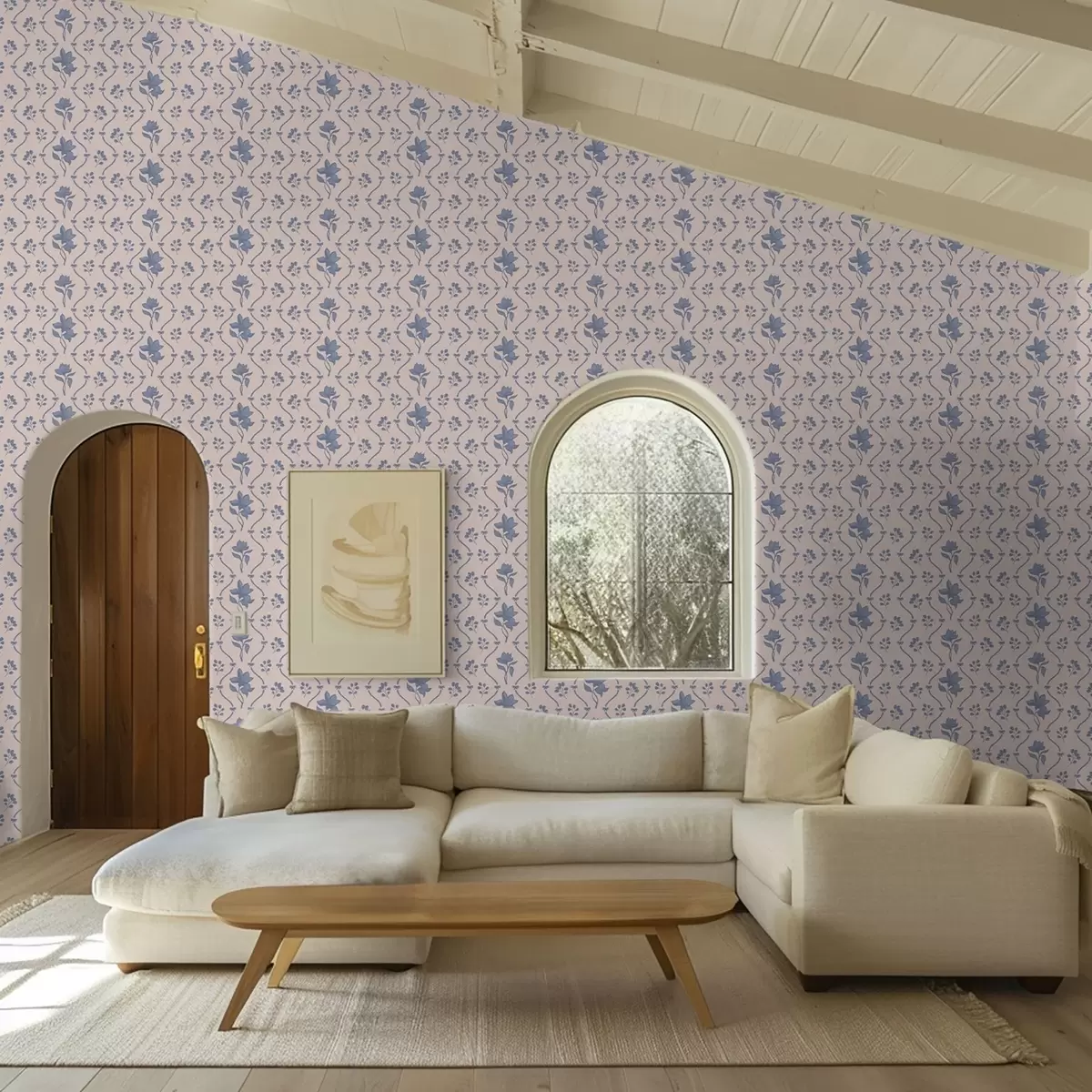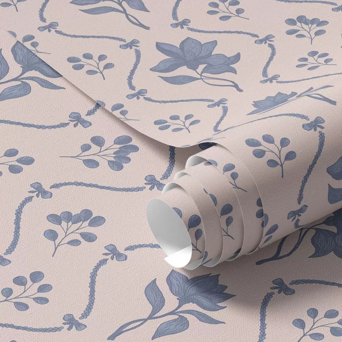 Wallpaper Flori mici și panglici în nuanțe de albastru și roz a00808v3