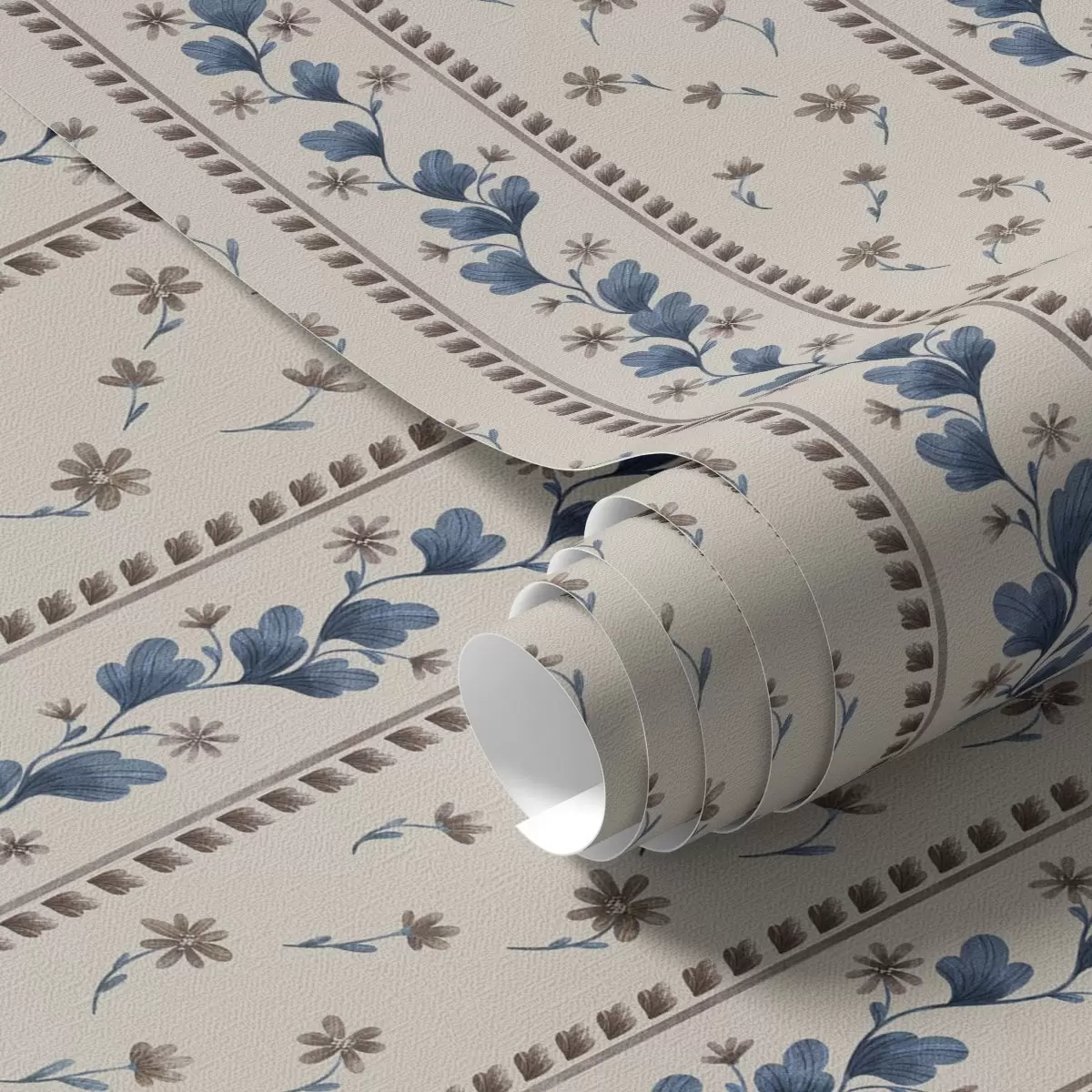 Tapet Dungi florale verticale în tonuri de albastru-maro Nr. a00811v3