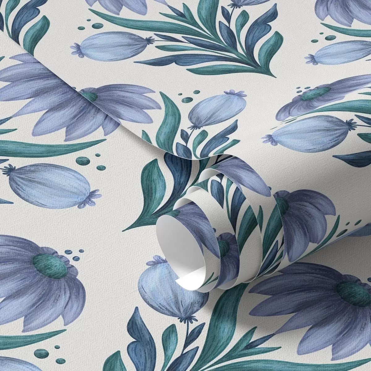 Tapet Ornament floral simetric în nuanțe albastru-alb Nr. a00812v2