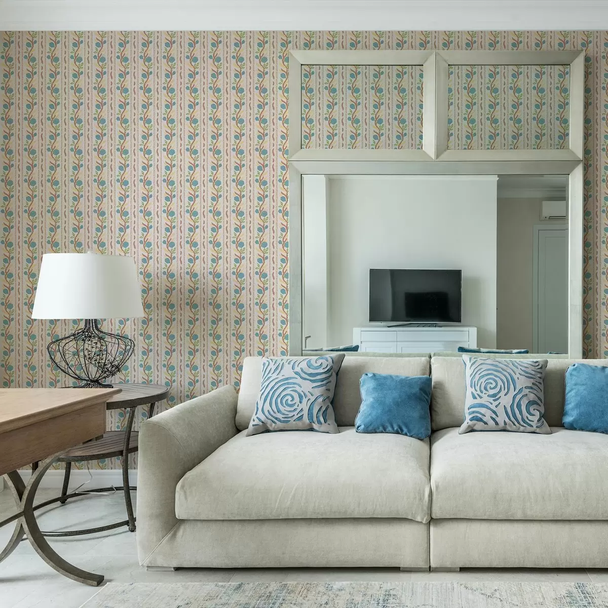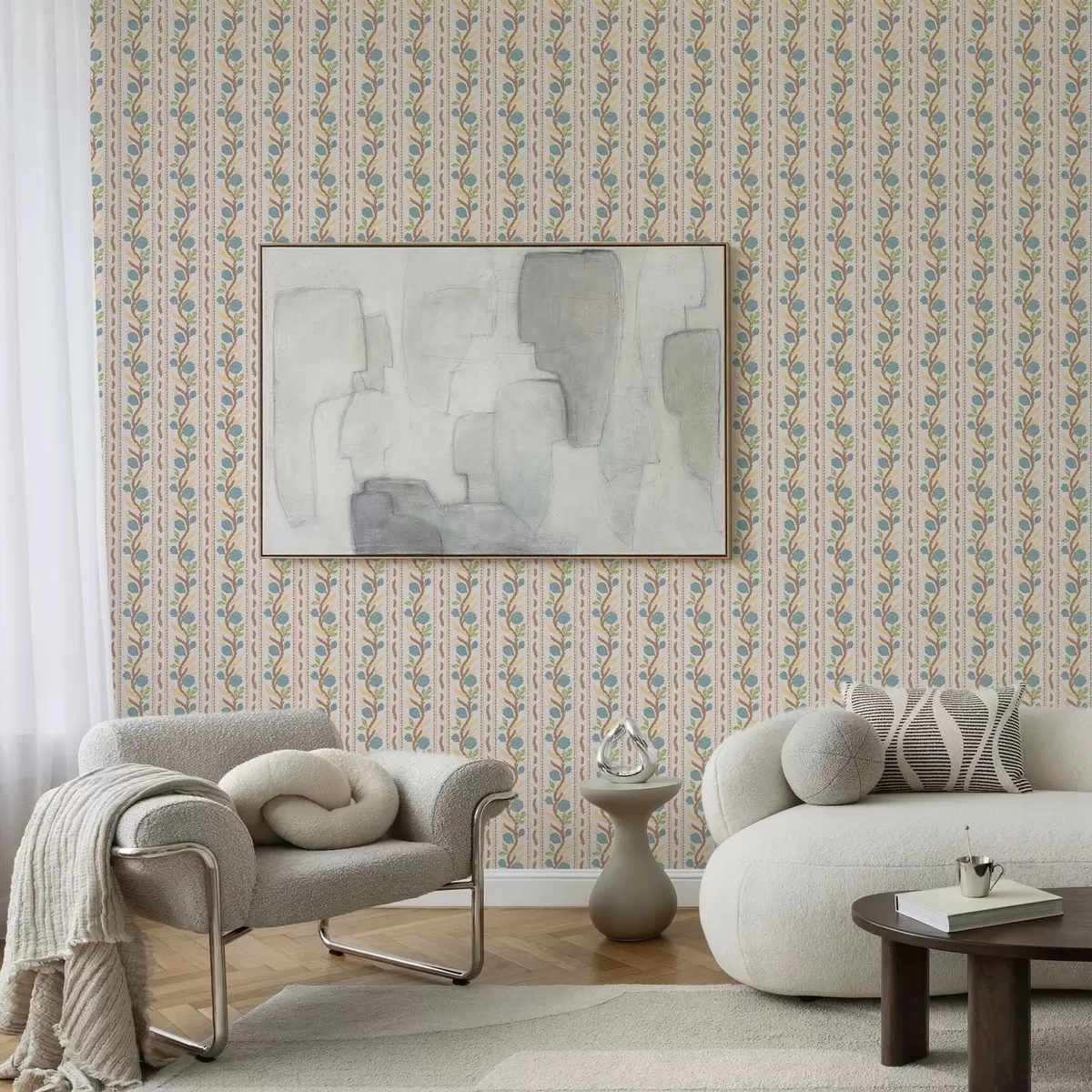 Tapet Dungi verticale cu flori albastre pe un fundal cald Nr. a00816v3