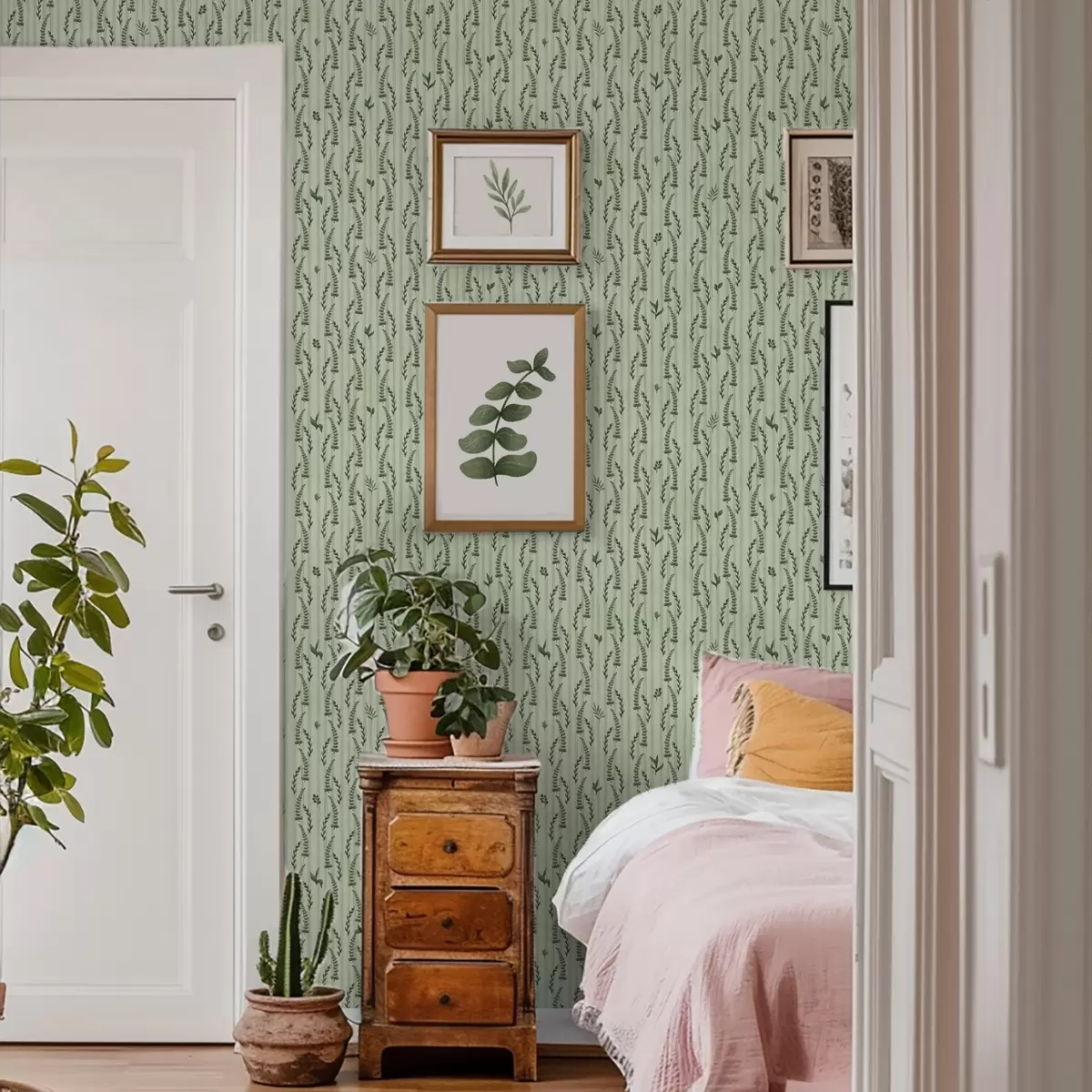 Tapet Iarbă verde densă și lăstari de mentă cu dungi Nr. a00819