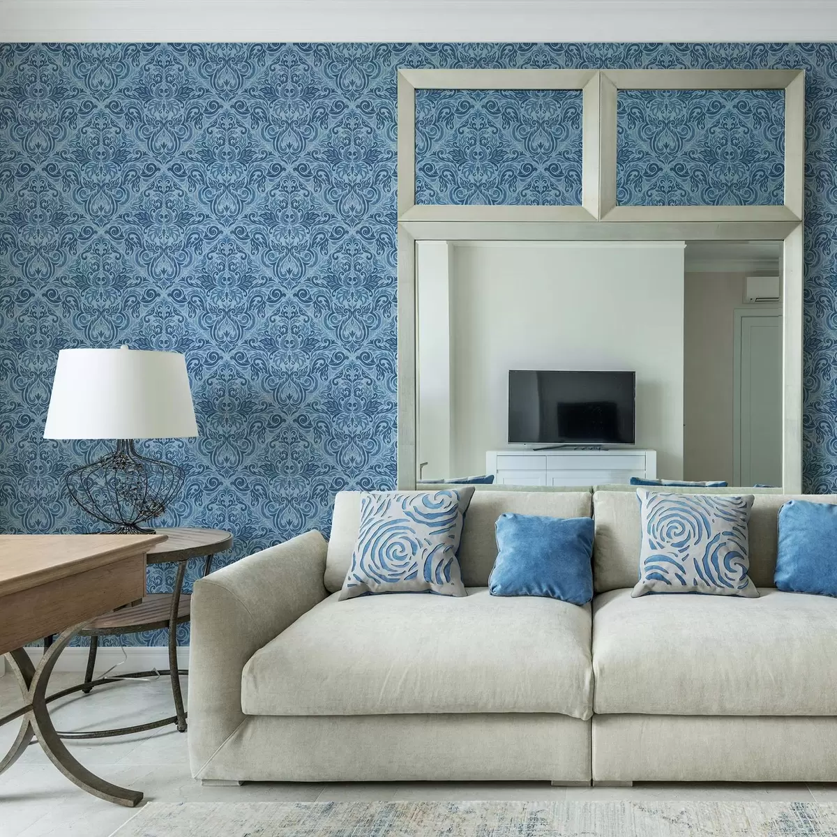 Tapet Damasc în nuanțe reci de albastru, contrast mai puternic Nr. a00826v2
