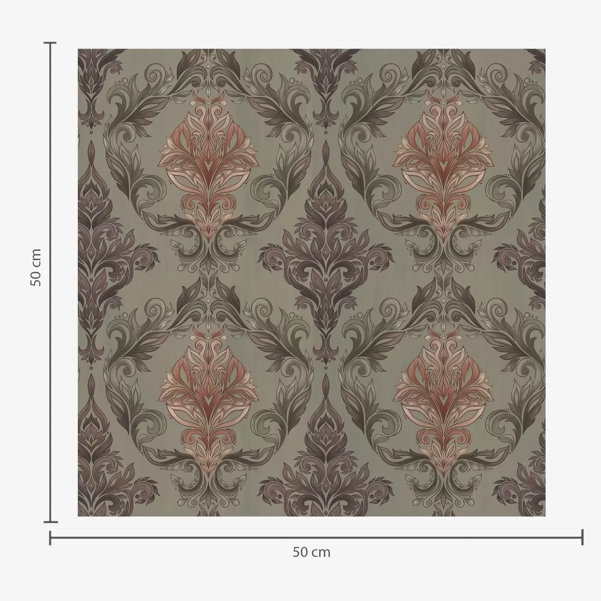 Tapet Damasc teracotă pe fond măslin discret Nr. a00828v3