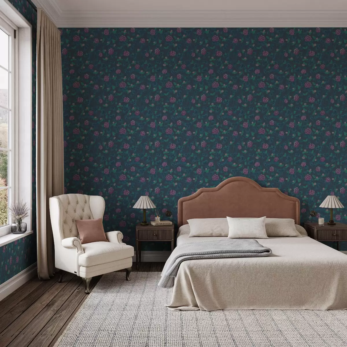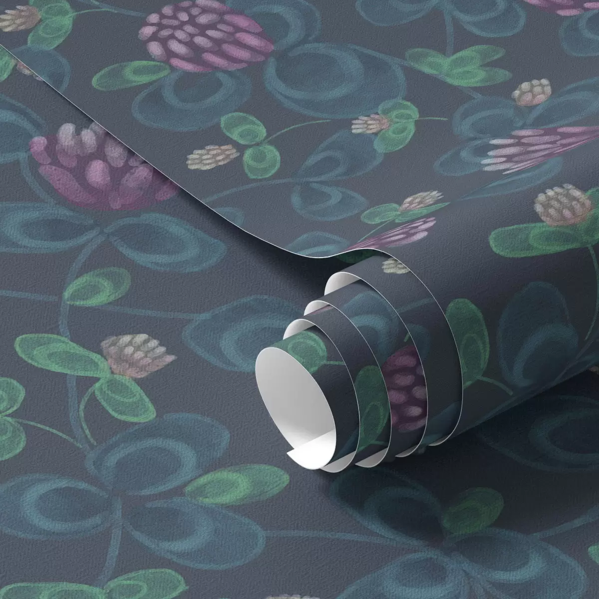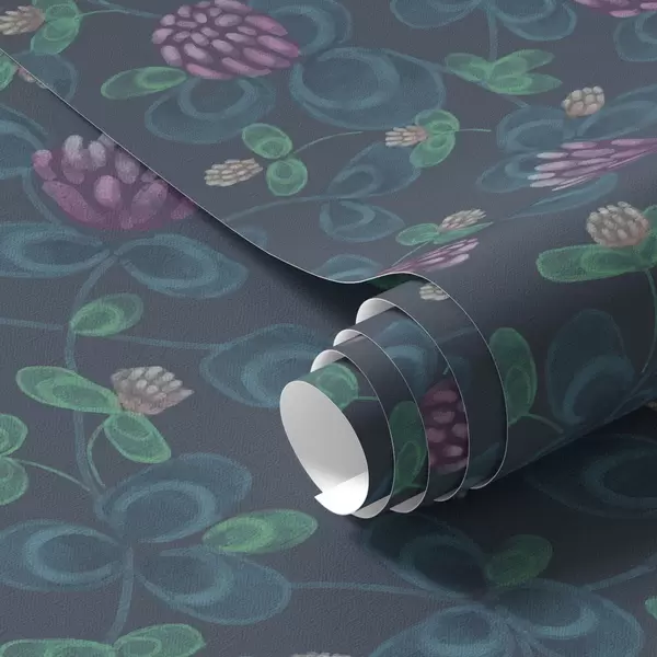 Tapet Trifoi cu flori violet pe fond albastru închis Nr. a00836