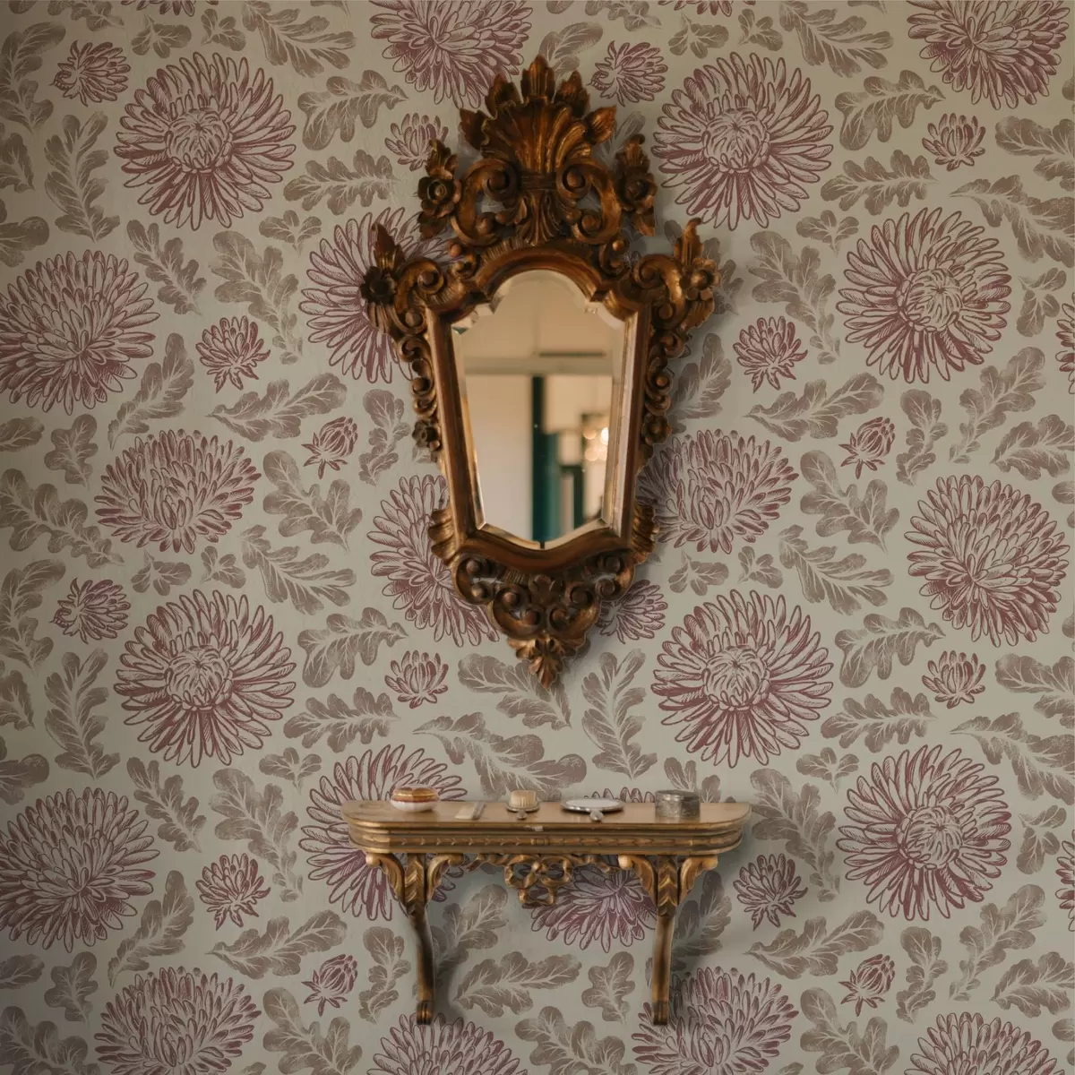 Tapet Crizanteme cu accente de vin pe crem Nr. a00840v1