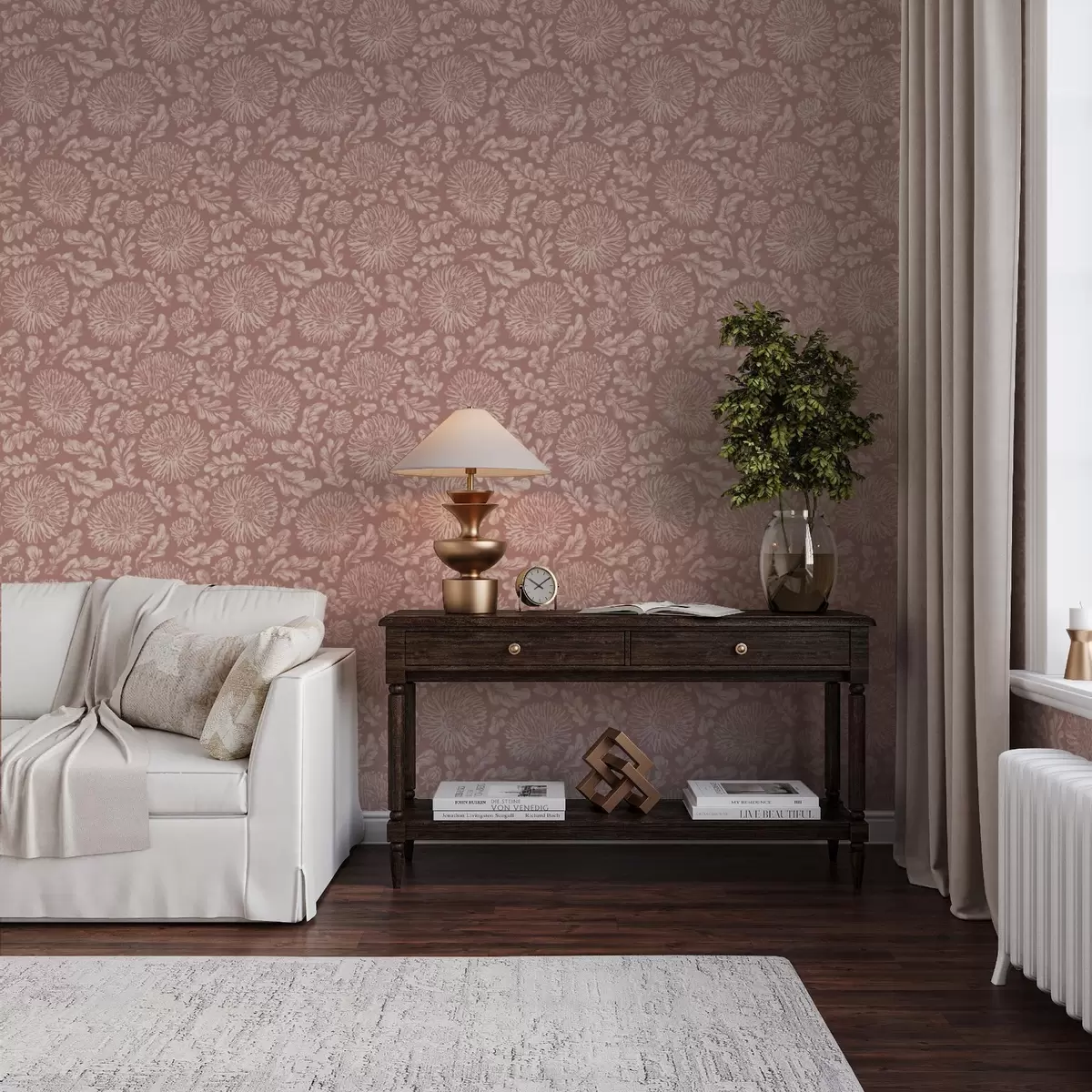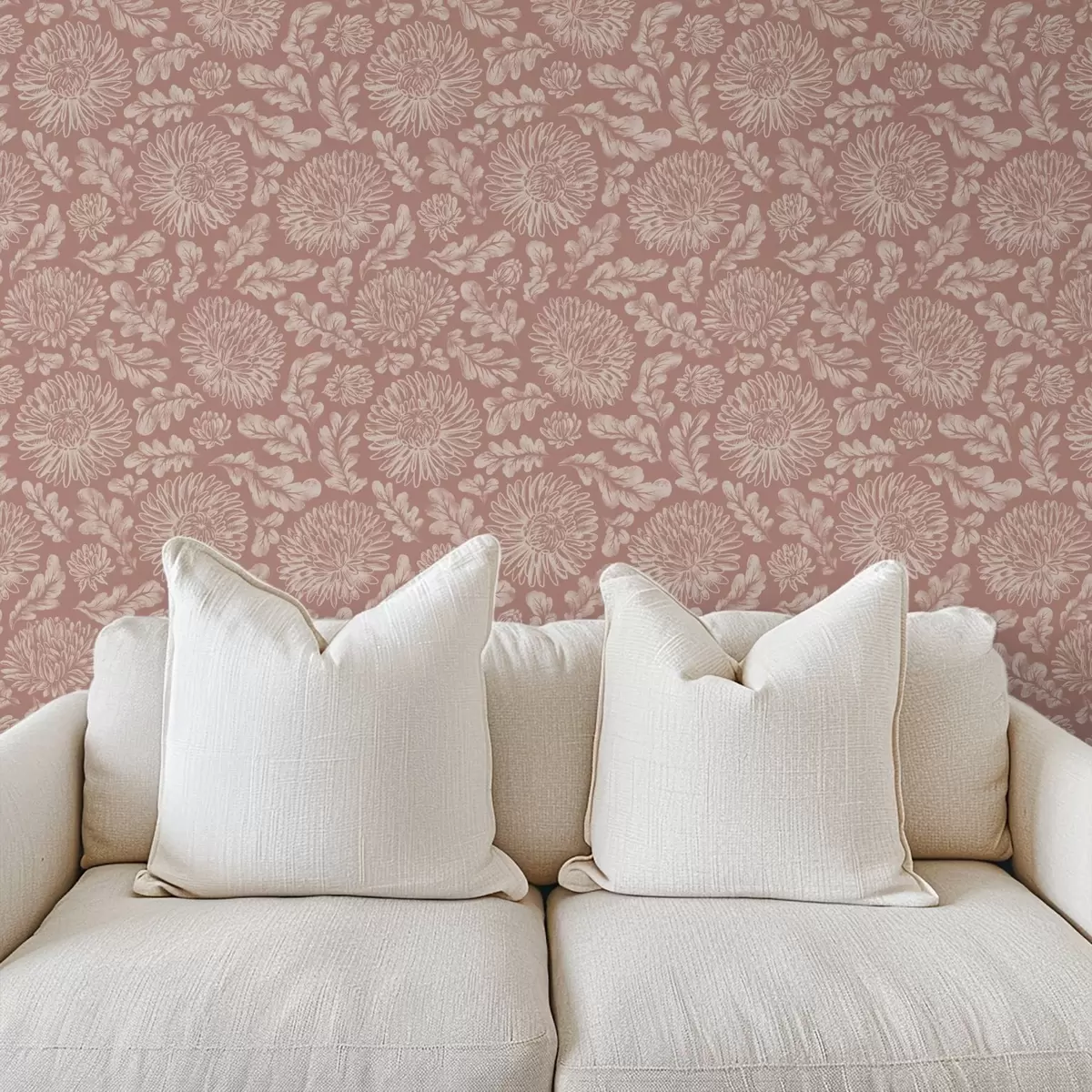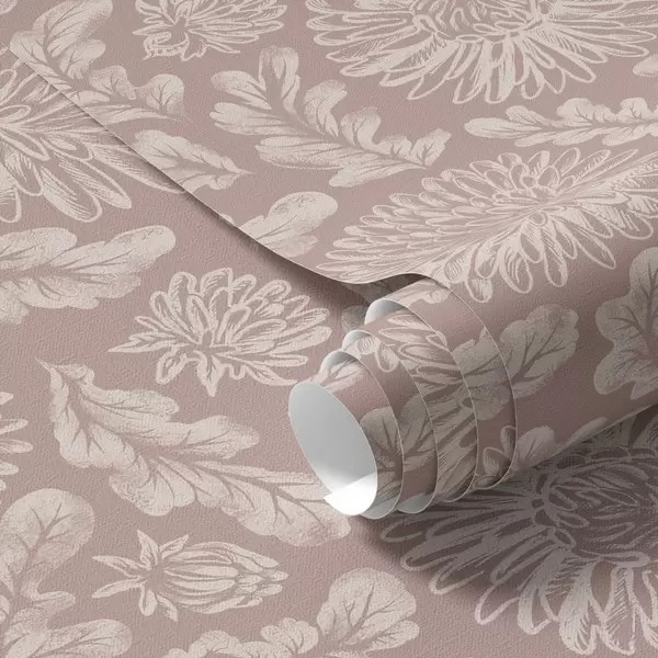 Tapet Crizanteme crem pe fond roz prăfuit Nr. a00840v2