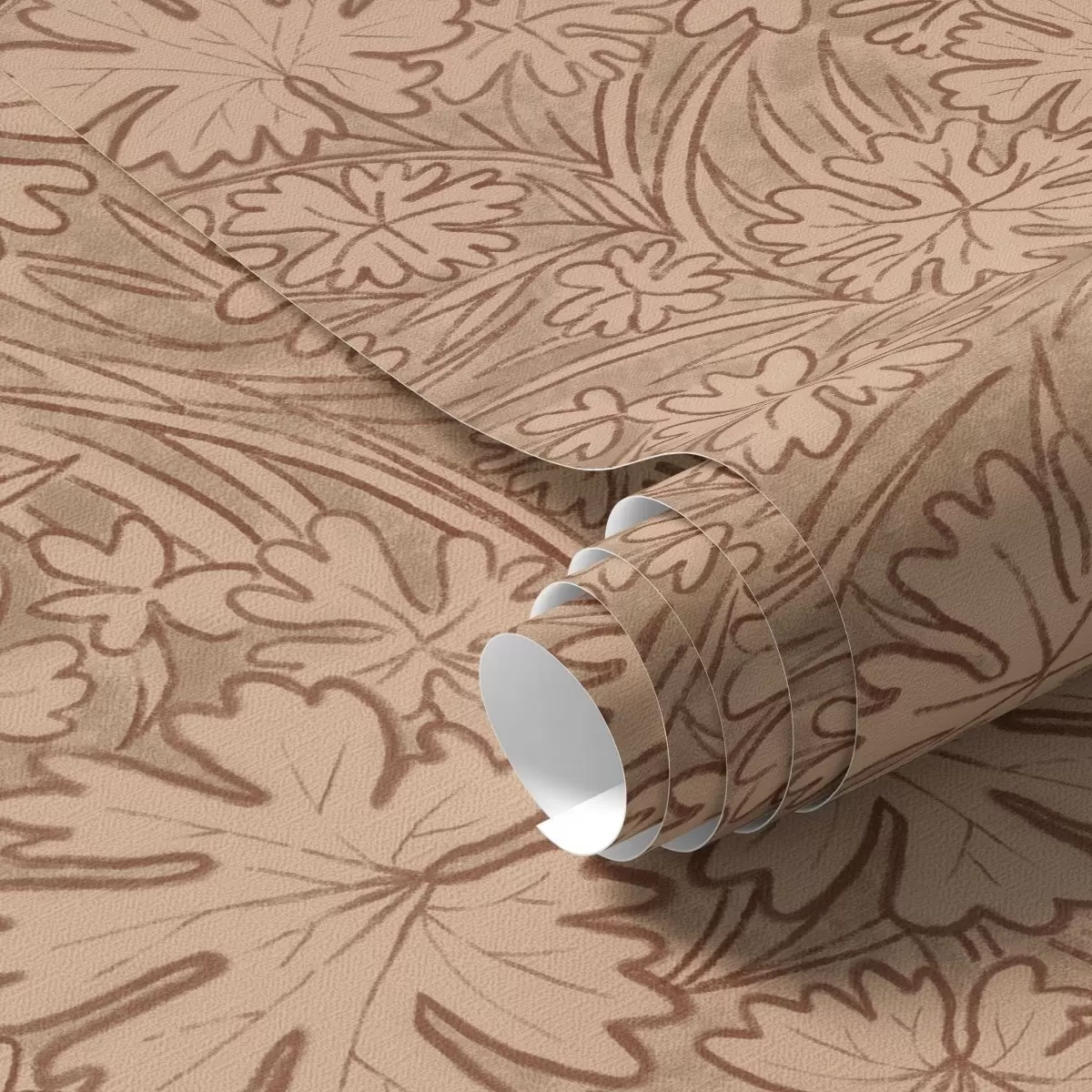 Tapet Frunze și ierburi de câmp într-o paletă de culori teracotă-bej Nr. a00847