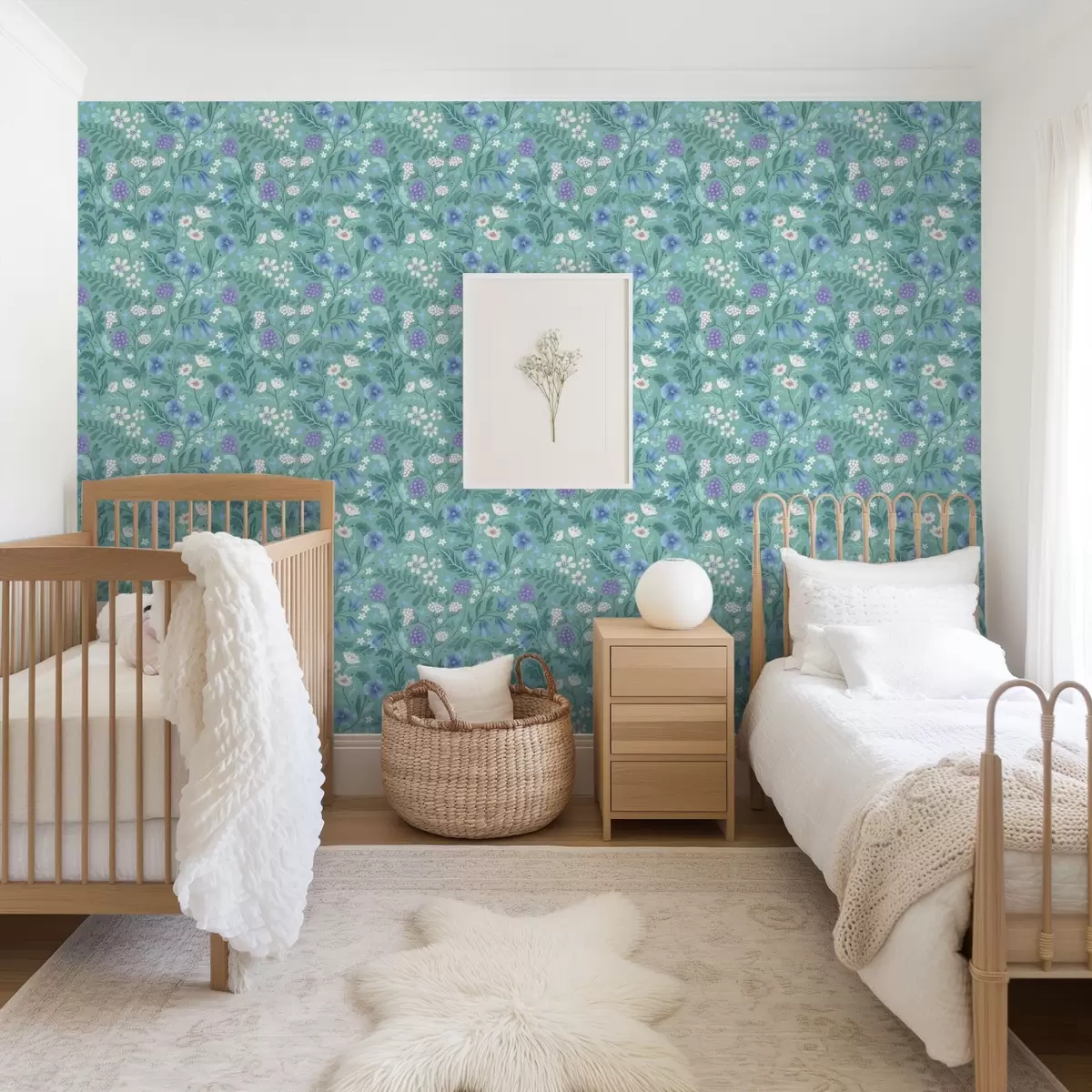 Tapet Flori sălbatice și fructe de pădure pe fundal de mentă delicată Nr. a00849