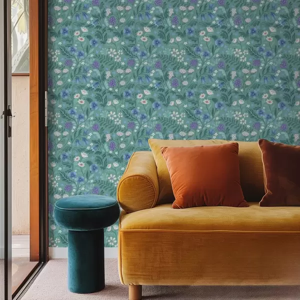 Tapet Flori sălbatice și fructe de pădure pe fundal de mentă delicată Nr. a00849