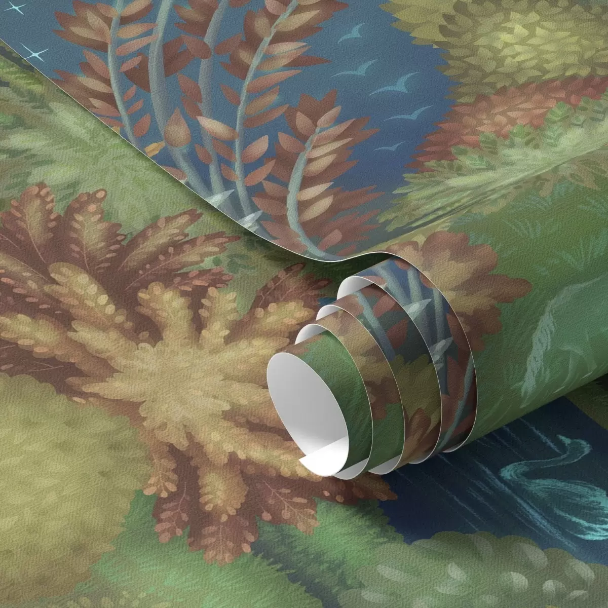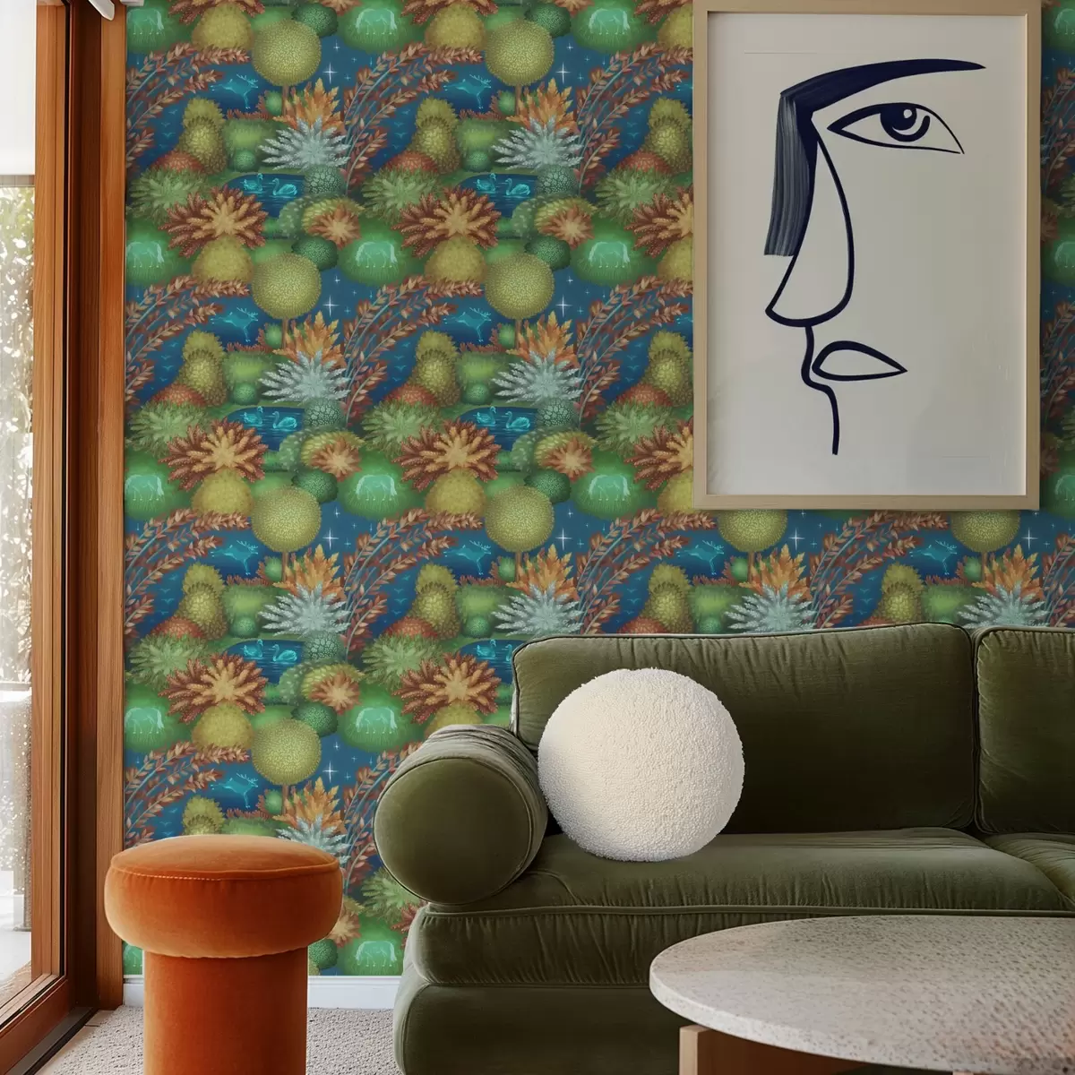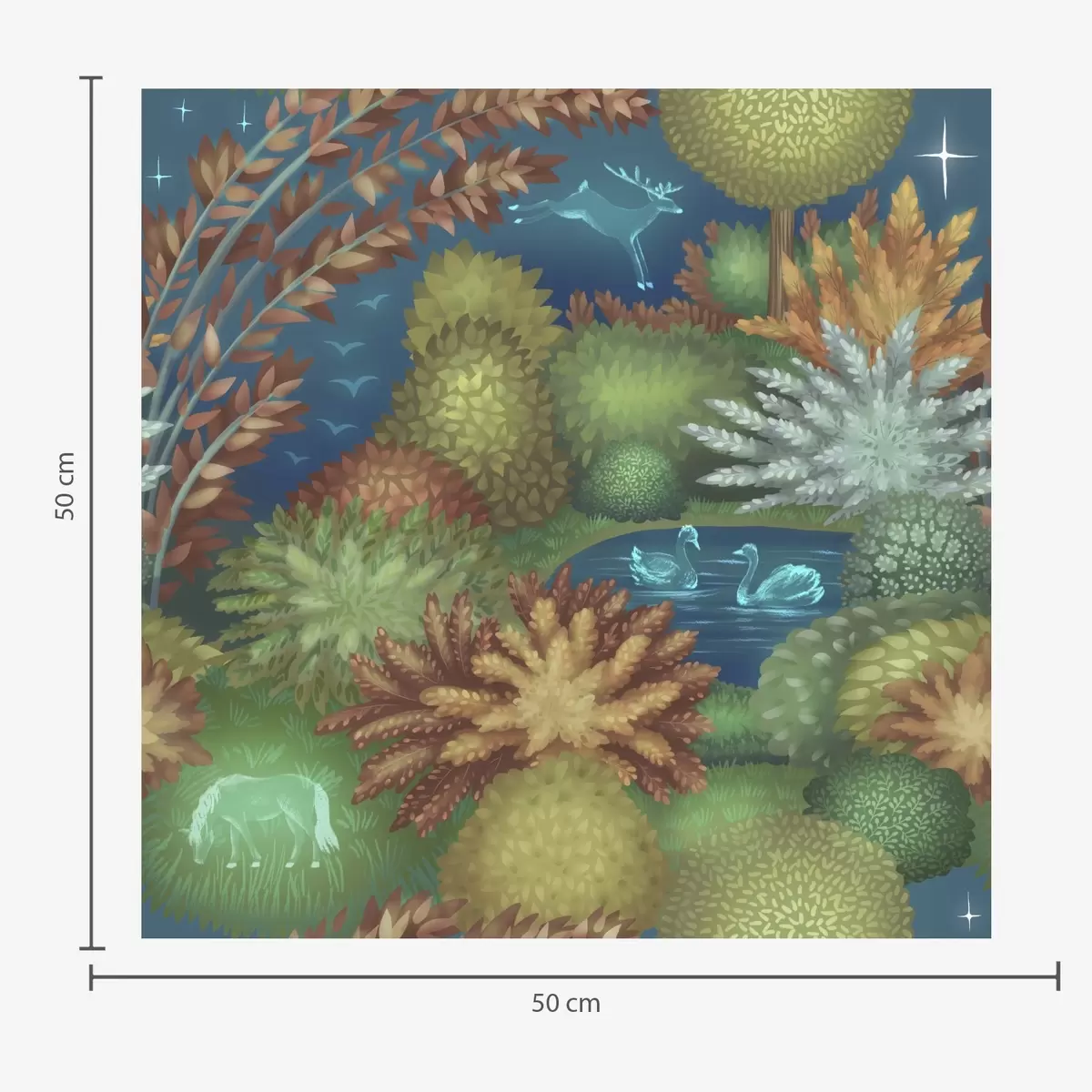 Tapet Grădină de basm nocturnă cu lac și animale strălucitoare Nr. a00851