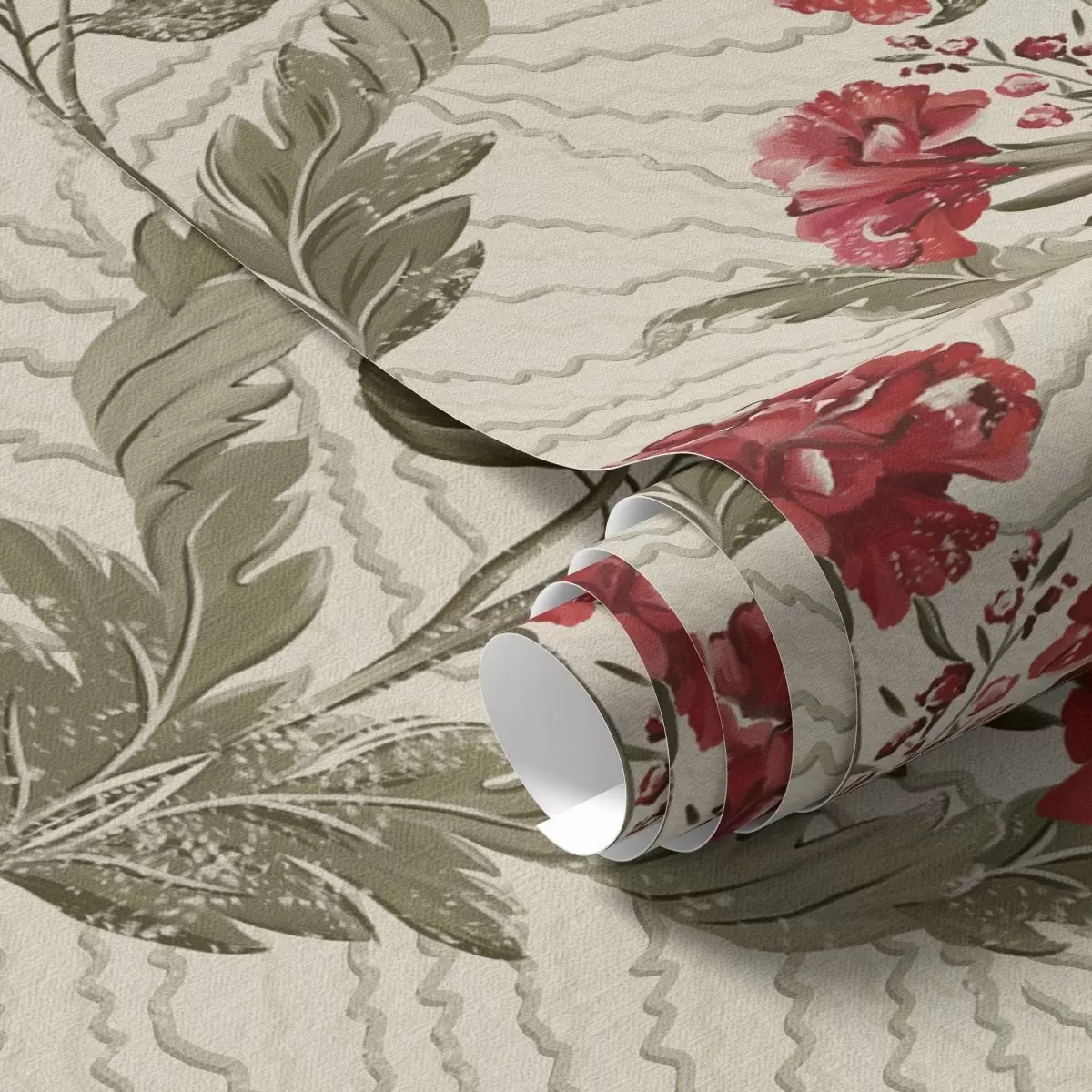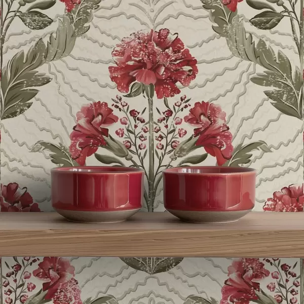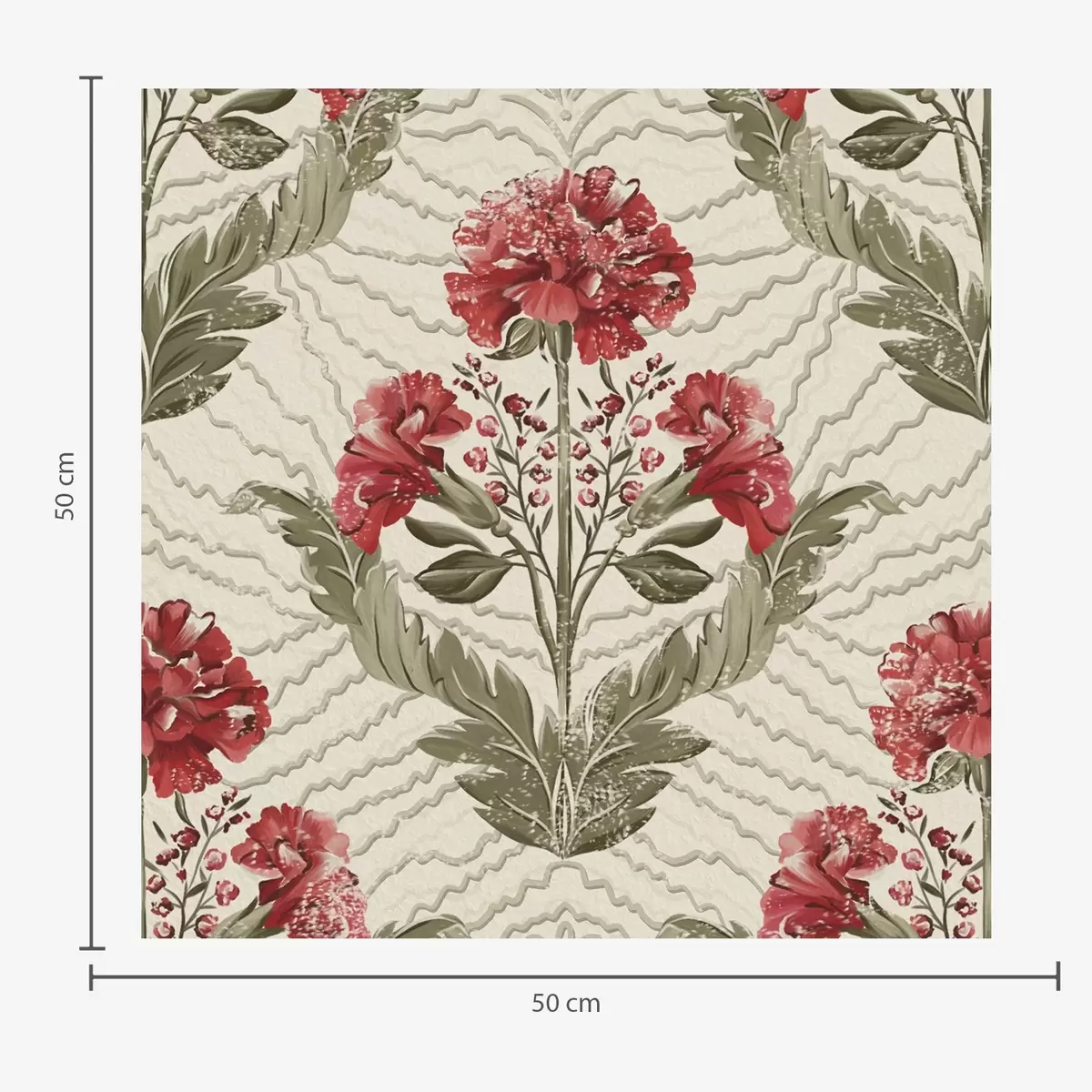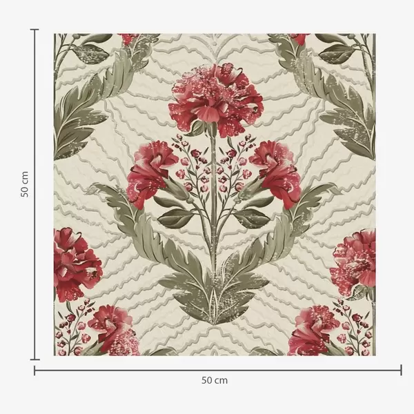 Tapet Bujori mari roșii pe fundal grafic, pe fond crem Nr. a00857