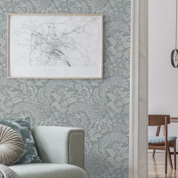 Tapet Model floral monocromatic pe fundal gri-albastru Nr. a00859